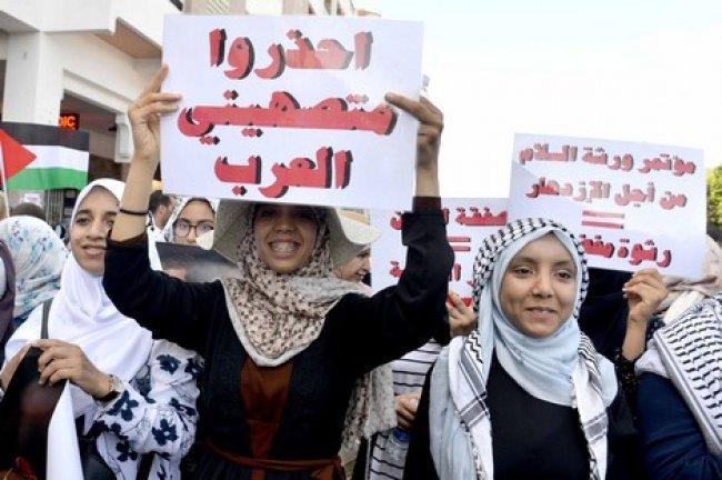 وأعربت "مجموعة العمل من أجل فلسطين" عن إدانتها "للموقف الرسمي المغربي القاضي بالمشاركة في ورشة الخيانة في البحرين"، واعتبرته "متناقضًا مع موقف الشعب المغربي وواجب ومقتضيات الحفاظ على السيادة الوطنية".