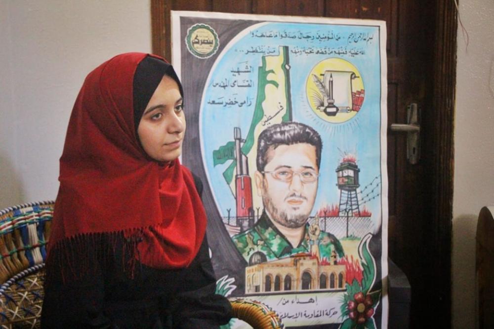 وتشير إلى أن "والدها كان قدوة بالنسبة لها في حياتها.. سأرفع رأسه دومًا، وسيكون لي دافع للنجاح والتفوق، ومن يراني يقول فعلًا أنني ابنة شهيد فلسطين".