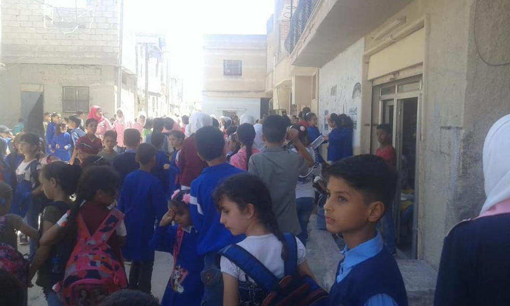 بدأ أكثر من (700) طالب وطالبة من أبناء مخيم درعا جنوب سورية عامهم الدراسي الجديد بلا مدارس، بعد أن تعرضت 6 مدارس في المخيم للدمار والخراب جراء قصف قوات النظام السوري والروسي خلال أحداث الحرب.