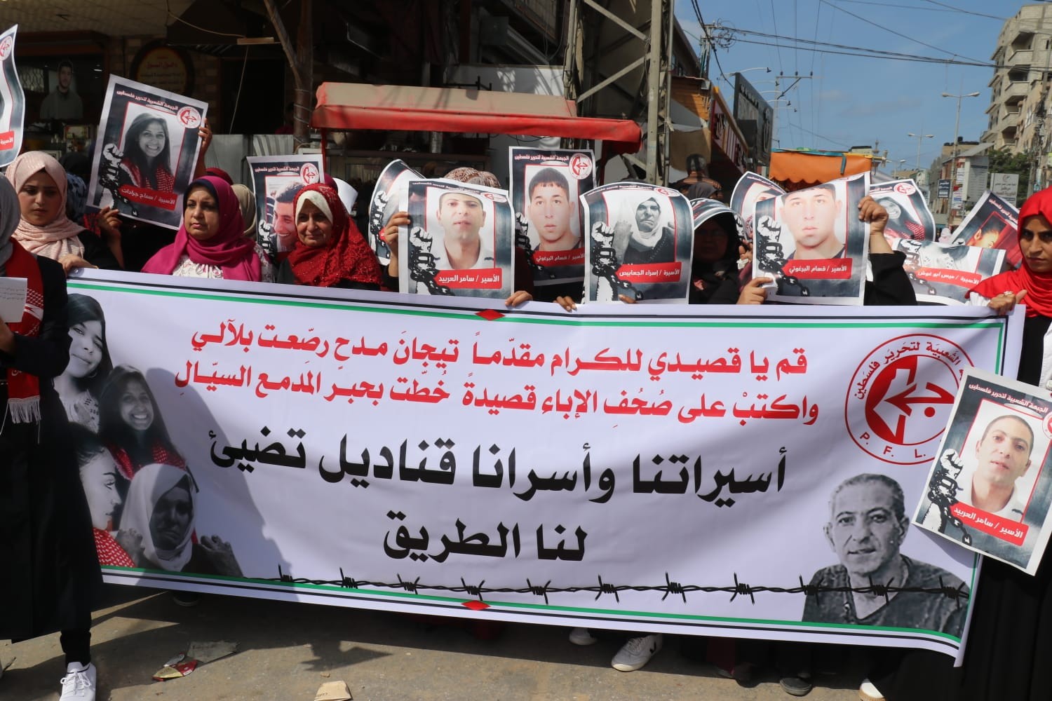 نظمت الجبهة الشعبية لتحرير فلسطين الخميس، على مفترق النصيرات بالمحافظة الوسطى وقفة نسوية إسنادية مع الأسيرات داخل سجون الاحتلال الإسرائيلي، ومع الأسير القائد سامر عربيد، بمشاركة واسعة من قيادات وكادرات وكوادر الجبهة بالمحافظة، وحشد نسوي، وممثلات عن القوى الوطنية والإسلامية.