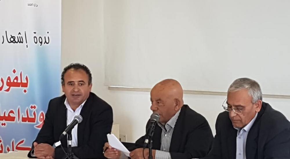 نظمت وزارة الثقافة ودار الكلمة الجامعية للفنون والثقافة في مقر الاخيرة ندوة اشهار كتاب " بلفور وتداعياته الكارثية"، والذي اصدرته وزارة الثقافة للكاتب والمفكر الفلسطيني سعيد مضية بمناسبة مرور قرن على صدور اعلان بلفور.