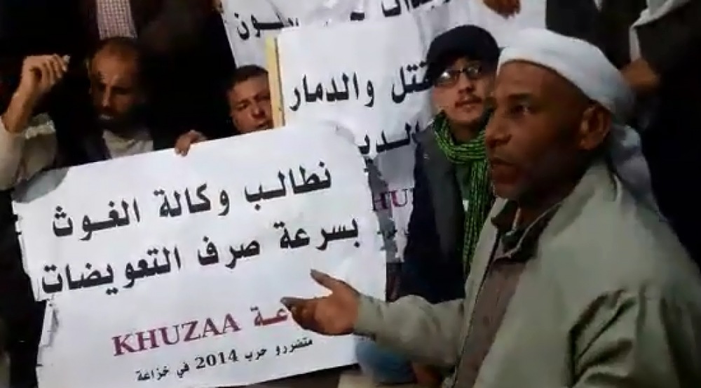 واحتجّ العشرات من متضرري العدوان الإسرائيلي على قطاع غزة عام 2014، من بلدة خزاعة، صباح الإثنين داخل مقر عيادة "أونروا"؛ استنكارًا لمّا أسموه "المماطلة والتسويف" من قبل إدارة وكالة الغوث صرف التعويضات لهم.