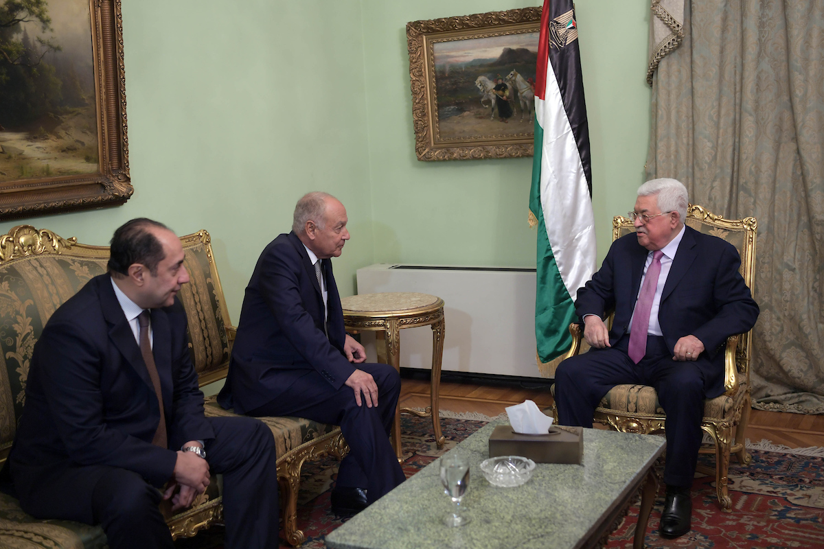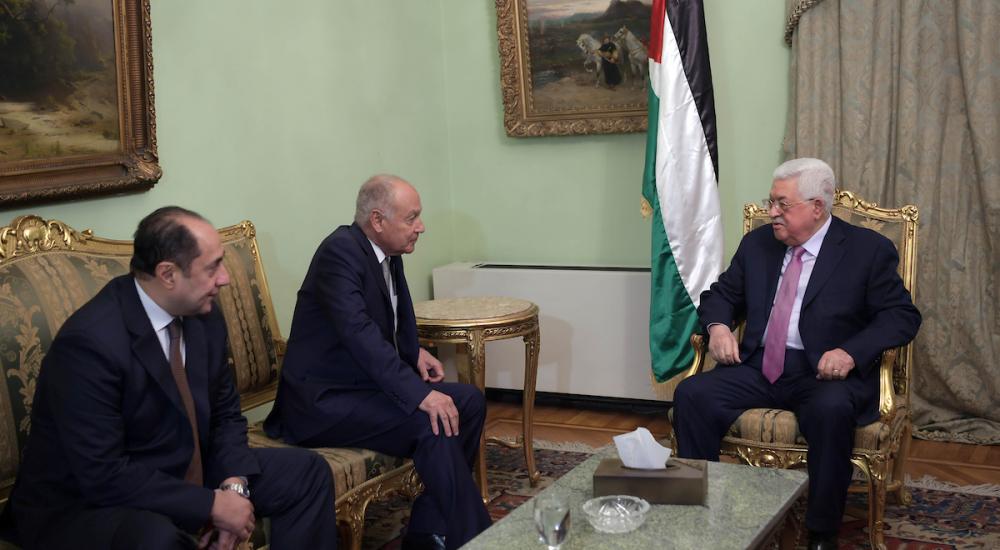 بحث رئيس السلطة الفلسطينية محمود عباس والأمين العام لجامعة الدول العربية أحمد أبو الغيط في القاهرة الجمعة موقفًا عربيًا موحدًا تجاه "صفقة القرن" وضرورة الالتزام بمبادرة السلام العربية دون تغيير.