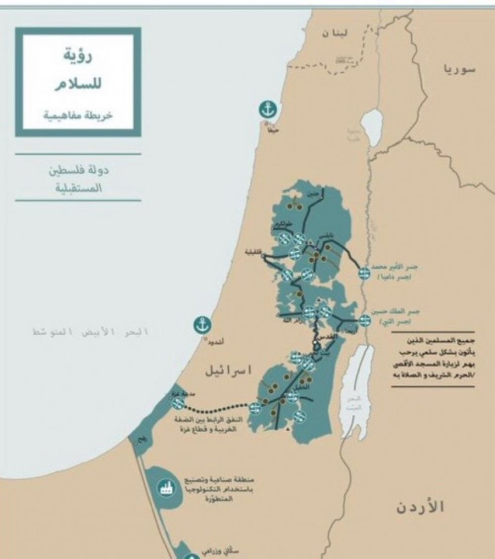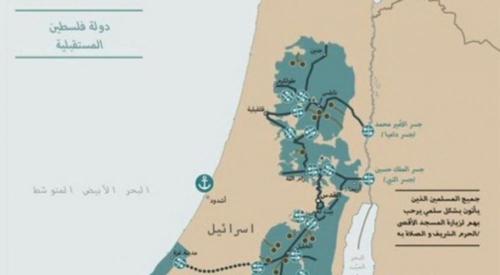 تُظهر خريطة- نشرها الرئيس الأمريكي دونالد ترمب لـما تسمى بـ"فلسطين الجديدة" ضمن ترتيبات خطة التسوية الأمريكية المعروفة إعلاميًا بـ"صفقة القرن"- محافظات وبلدات الضفة الغربية المحتلة على شكل جزر منفصلة، تقطعت فيها الأرض على شكل "أرخبيل"، ولم تعد بقعة جغرافية واحدة.