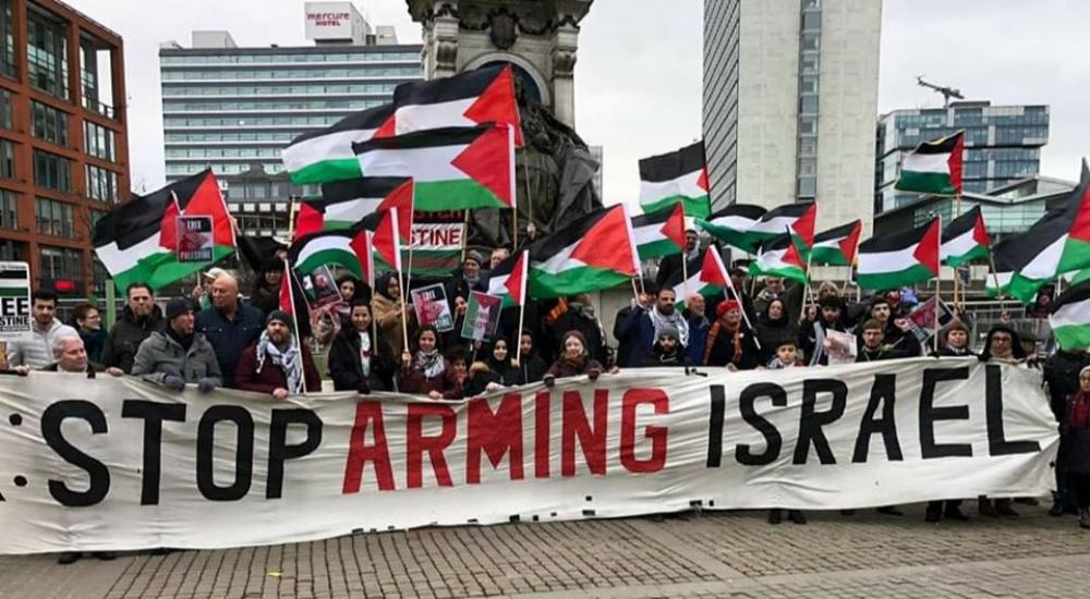 وجاءت المظاهرة بتنظيم من الجالية الفلسطينية في شمال غرب بريطانيا والمنتدى الفلسطيني في بريطانيا.
