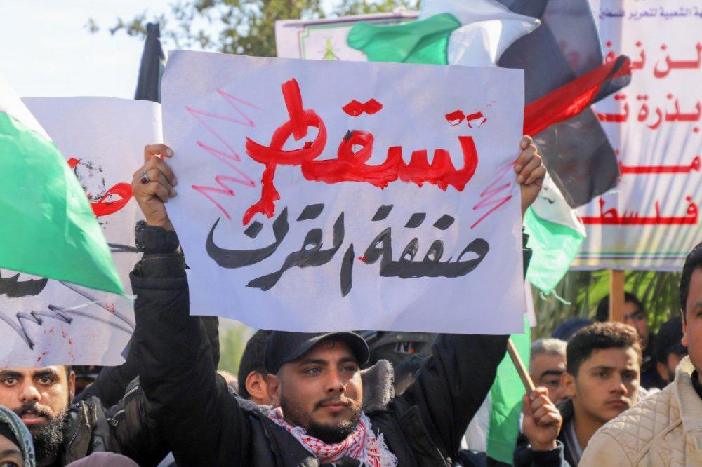وقال عضو المكتب السياسية لحركة الجهاد الإسلامي خالد البطش: "إن الإعلان عن صفقة القرن سبقه الكثير من الإشارات والإجراءات والمخططات التي مهّدت لها منذ سنوات، بدءًا باتفاق أوسلو وإقامة علاقات مع إسرائيل ومرورًا بإعلان عدد من الجهات نفسها عرّابًا بين الاحتلال والدول العربية عقب هذا الاتفاق، ومن ثم الاعتراف بالمتبادل بين إسرائيل ومنظمة التحرير وبدء التفاوض على إقامة دولتين".