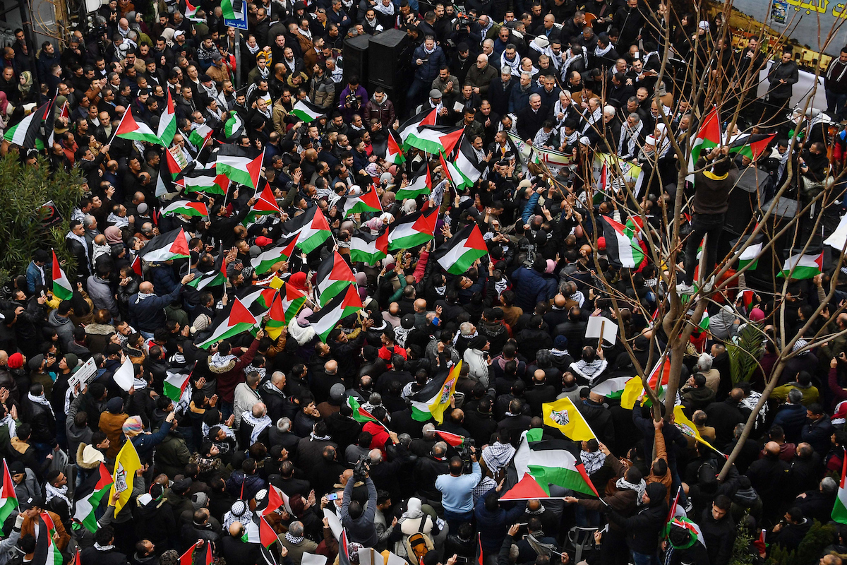 احتشد آلاف المواطنين وسط مدينة رام الله وسط الضفة الغربية المحتلة رفضًا لـ"صفقة القرن"، ودعمًا للرئيس محمود عباس قبيل كلمته المرتقبة أمام مجلس الأمن اليوم.