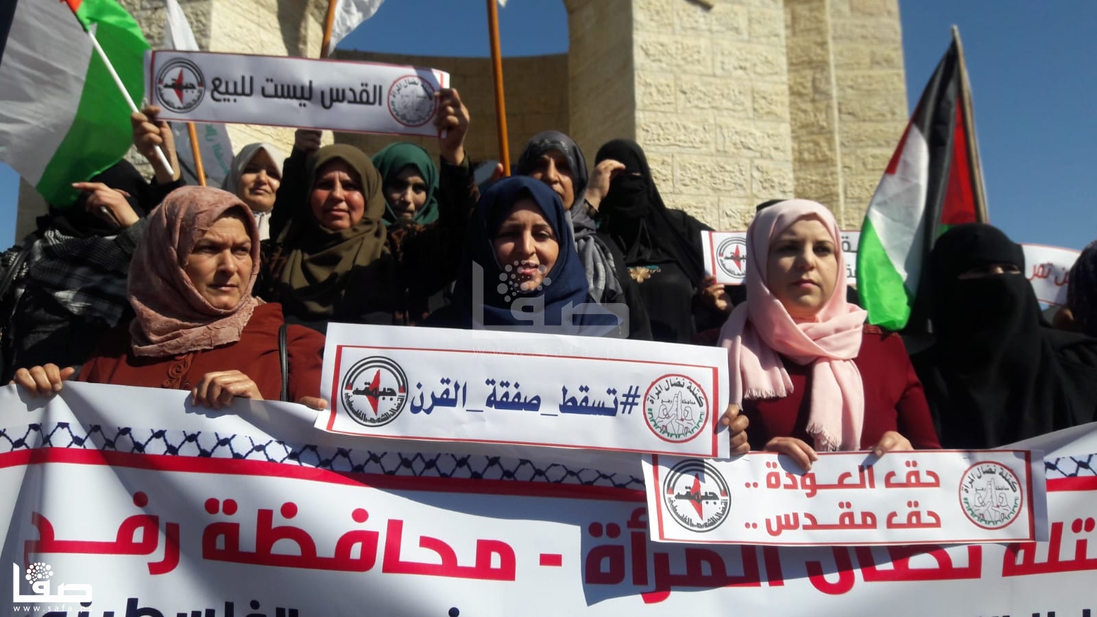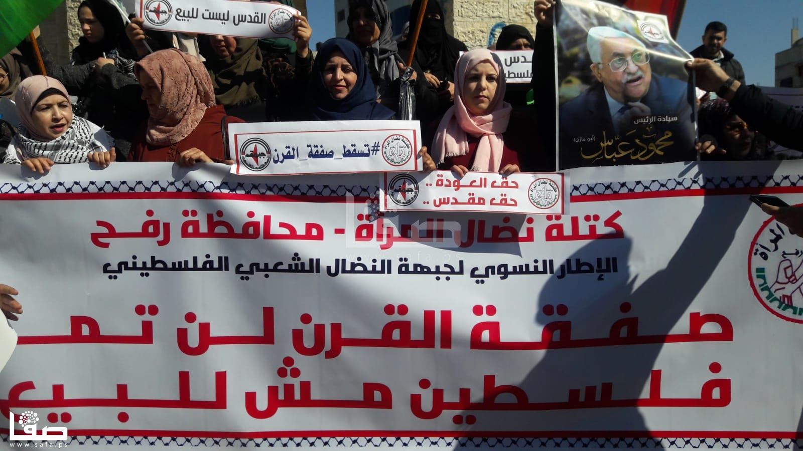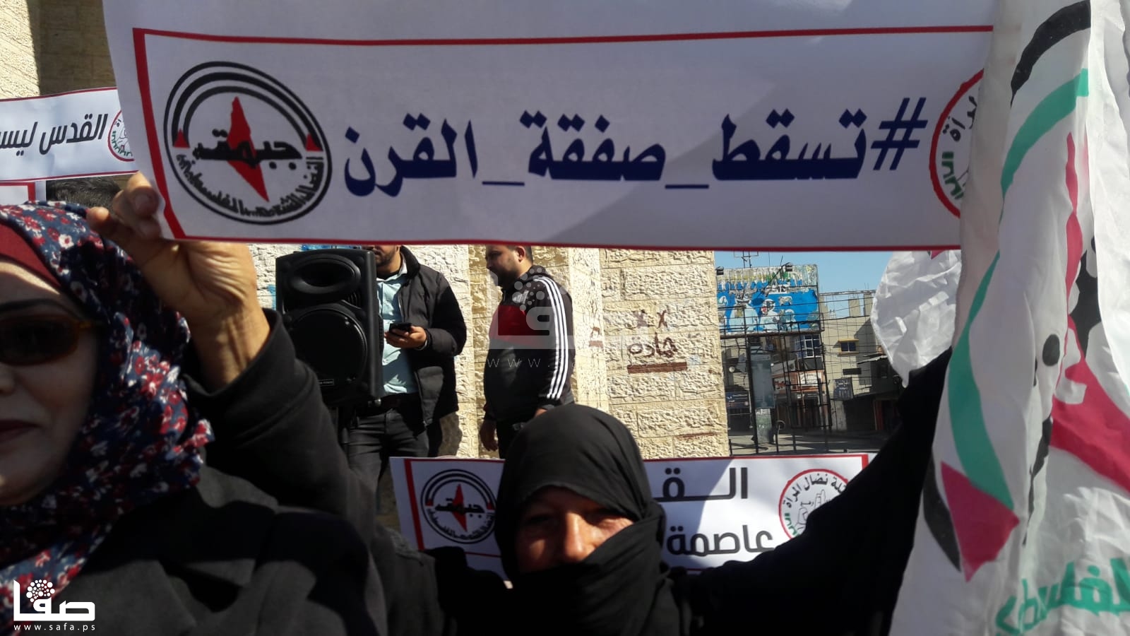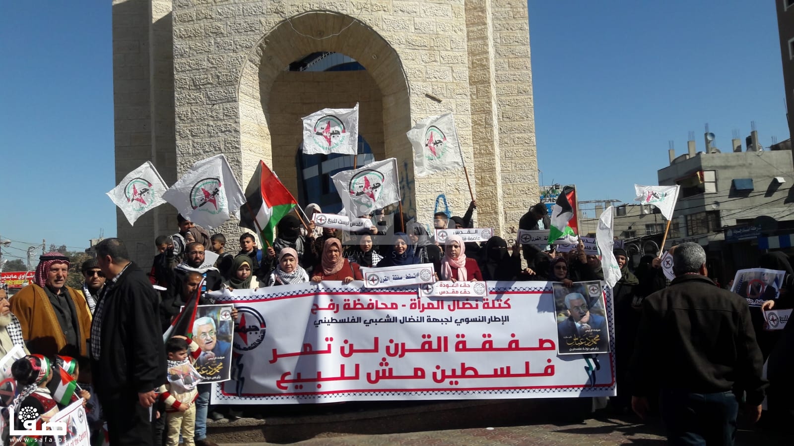 نظمت الجبهة الديمقراطية لتحرير فلسطين الخميس وقفة رافضة لصفقة القرن برفح.