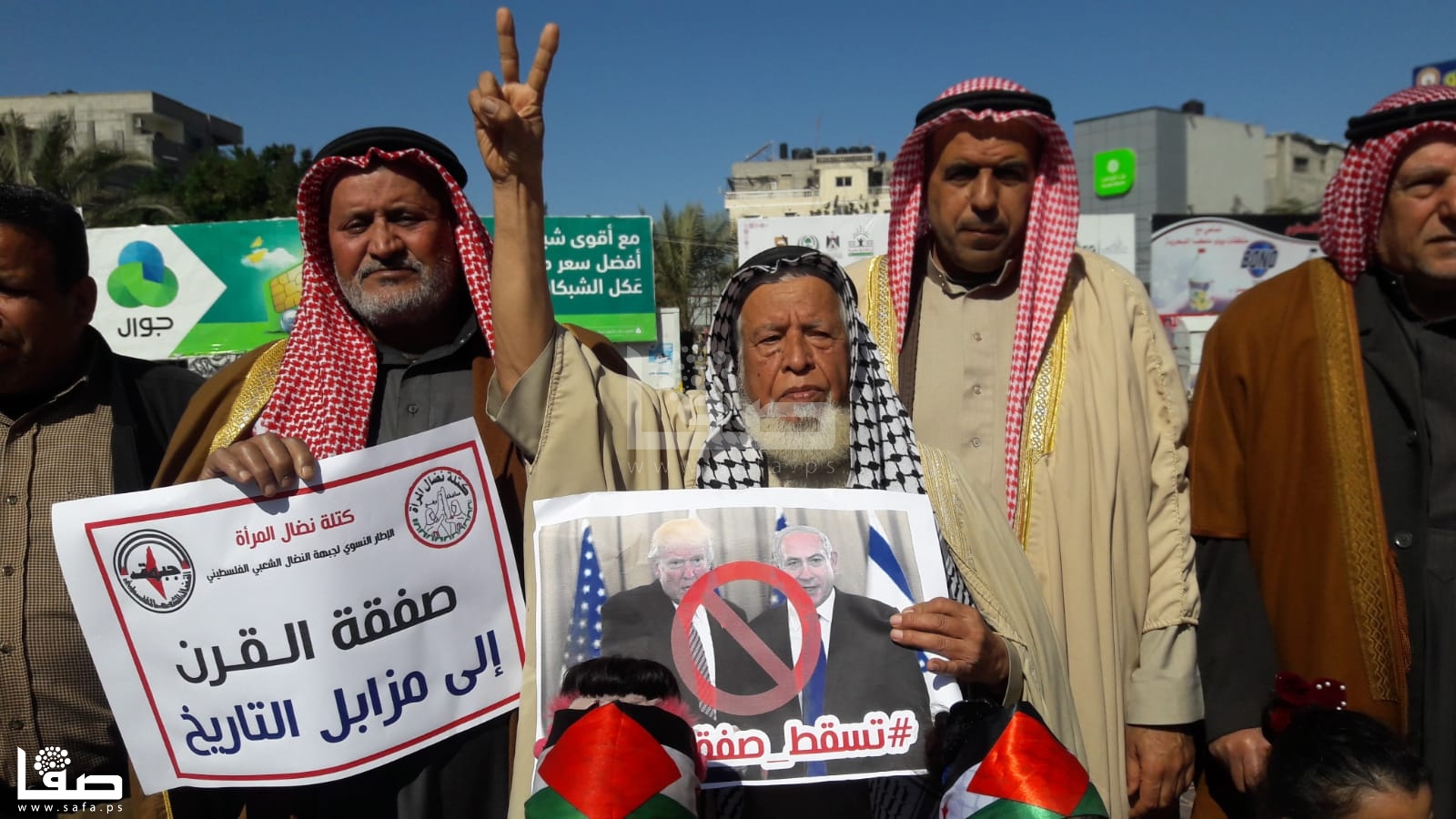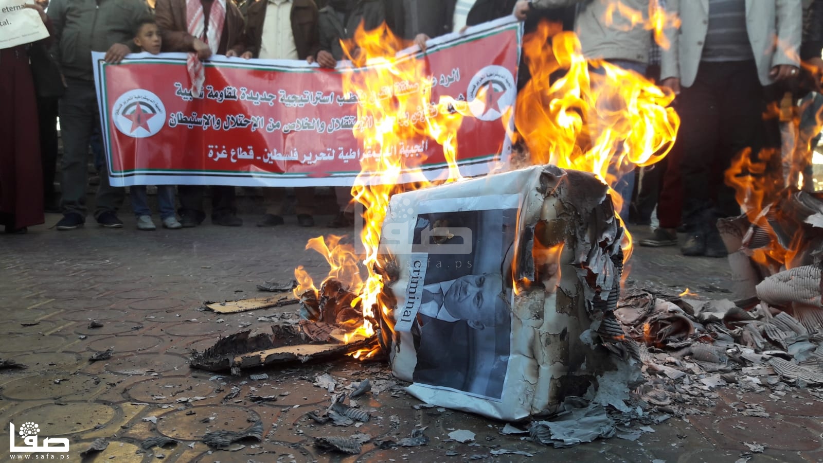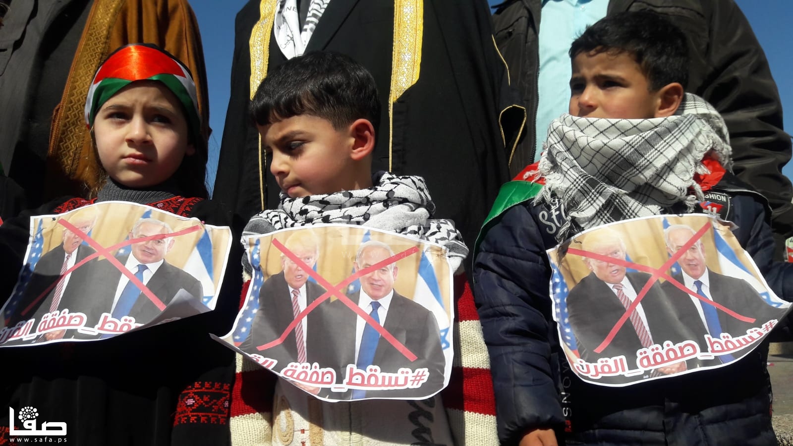 وأحرق غاضبون خلال الوقفة، "تابوت عليه صور الرئيس الأمريكي"، فيما رفع المشاركون لافتات، كُتب عليها: "تسقط صفقة القرن، ستبقى القدس عاصمتنا الأبدية، الأمم المتحدة مطالبة بالتحرك لنصر القضية الفلسطينية، بالوحدة والمقاومة تسقط الصفقة، حق العودة مقدس لا تستطيع أميركا إسقاطه".