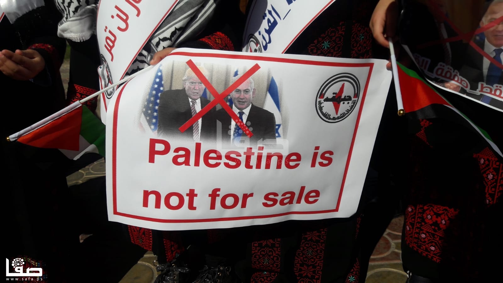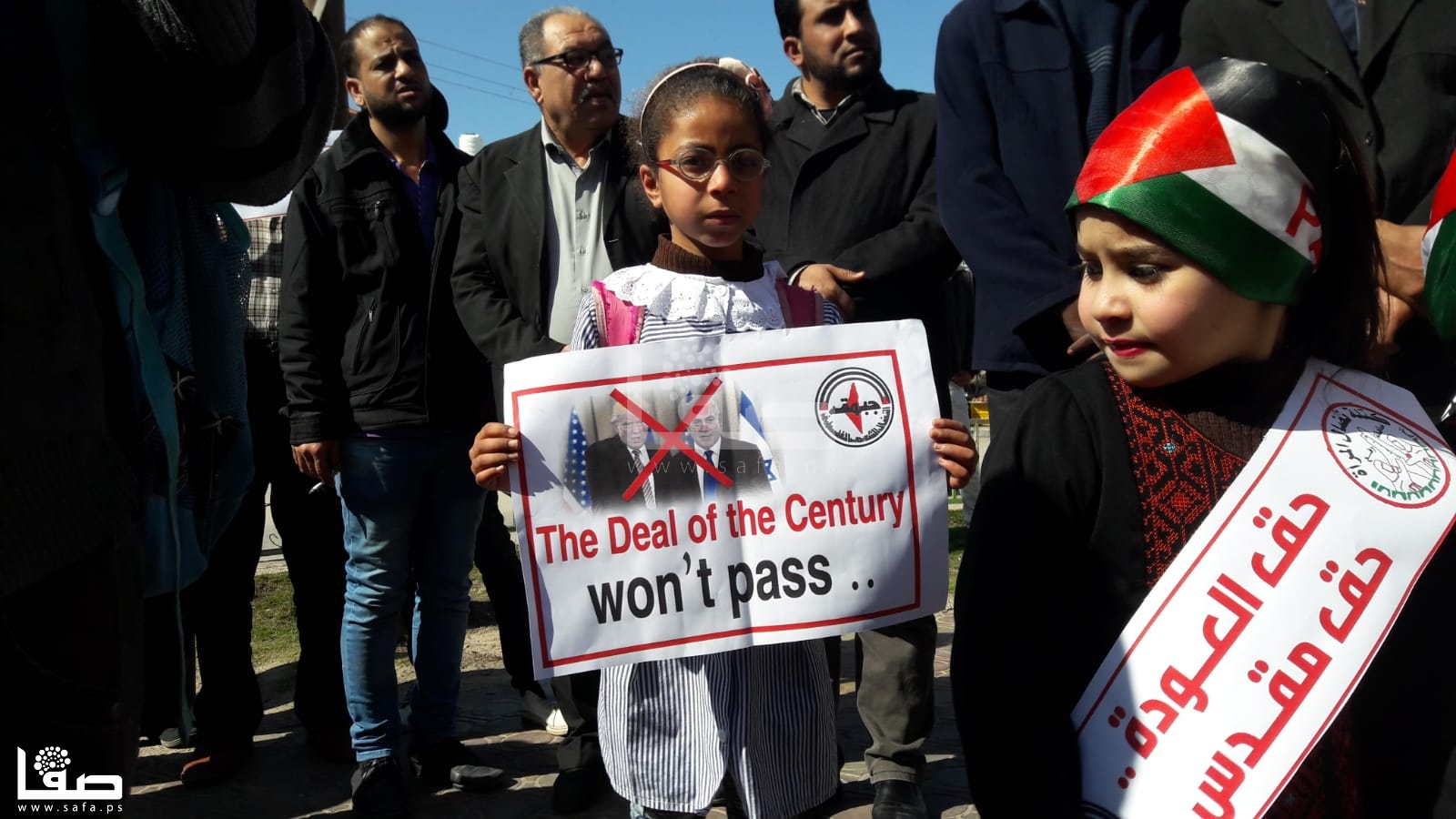 وقال ممثل عن الجبهة الديمقراطية محمد الحسنات، خلال كلمة في الوقفة: "جئنا اليوم لنؤكد مُجددًا تمسكنا بالرفض الكامل برؤية (ترمب نتنياهو) المسماة بصفقة القرن، التي تجسد العنصرية الصهيونية، في التنكر لحقوق شعبنا".