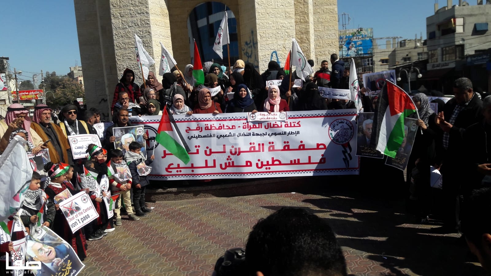 "الديمقراطية" تنظم وقفة رافضة لصفقة القرن برفح