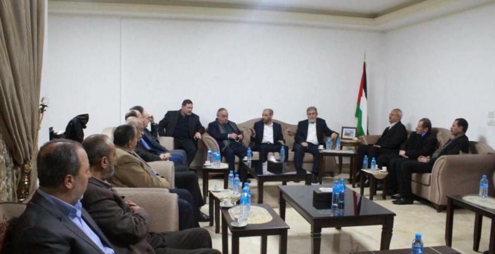 بحث عضو المكتب السياسي لحركة حماس حسام بدران مع أمناء عامين وقيادات من الفصائل الفلسطينية في بيروت الثلاثاء تداعيات صفقة القرن وسبل مواجهتها بكل الوسائل المتاحة.