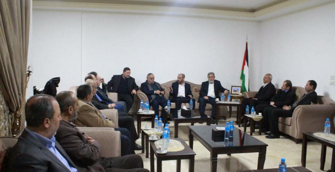 وشدد المجتمعون على رفضهم المطلق لكل مضامين صفقة القرن التي تستهدف حقوق وثوابت شعبنا الفلسطيني، مؤكدين أن الوحدة الوطنية هي الحجر الأساس لمواجهة صفقة القرن وإفشالها، وعلى حق شعبنا الفلسطيني بمقاومة الاحتلال والدفاع عن أرضه ومقدساته بكل الوسائل المتاحة.