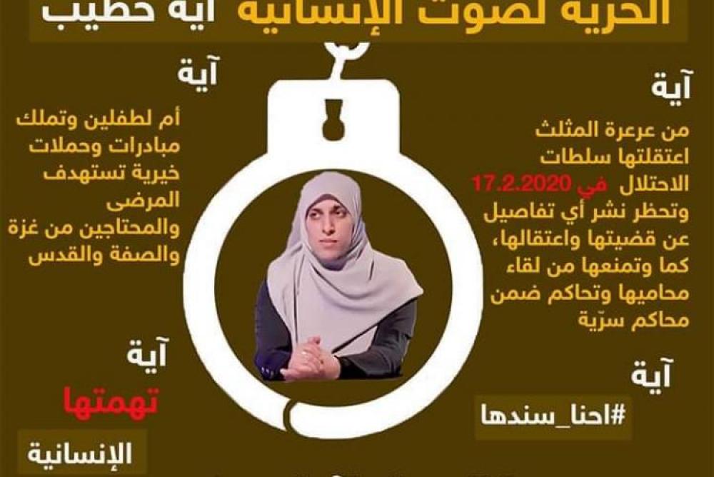 أطلق نشطاء فلسطينيون حملة إلكترونية لنصرة الناشطة الأسيرة آية خطيب من الداخل المحتل عام 1948.