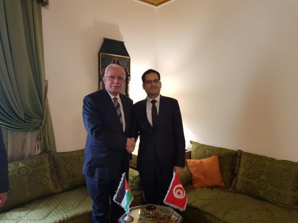 بحث وزير الخارجية وشؤون المغتربين رياض المالكي يوم الأربعاء مع نظيره التونسي نور الدين الري، بجامعة الدول العربية، آخر تطورات القضية الفلسطينية، وسبل التعاون الدائم والمشترك بين البلدين على المستويين العربي والدولي.