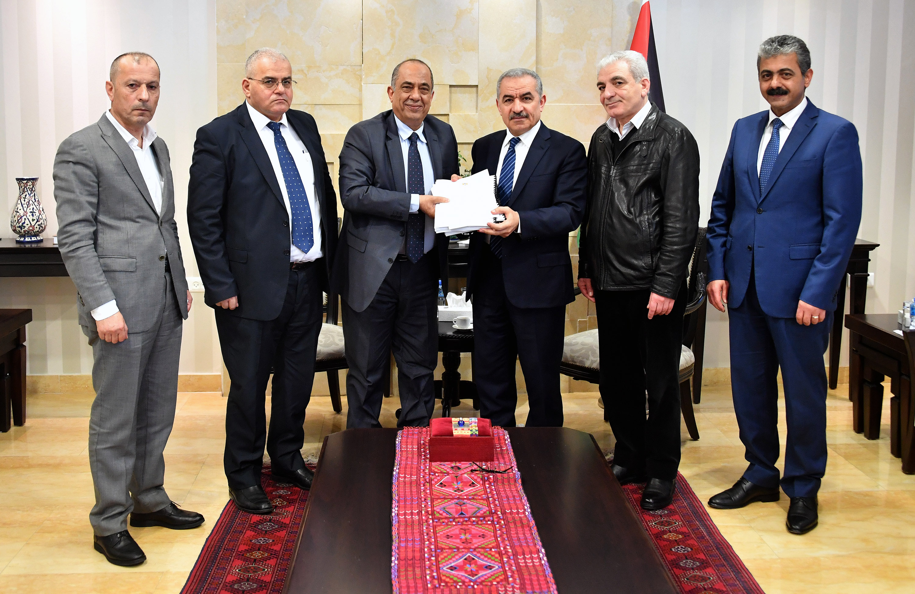 تسلم رئيس الوزراء محمد اشتية يوم الأحد في مكتبه برام الله وسط الضفة الغربية المحتلة تقرير لجنة التحقيق حول وفاة المواطن صلاح زكارنة من قباطية بجنين شمال الضفة الغربية المحتلة التي شكلت برئاسة وزير العدل محمد شلالدة.