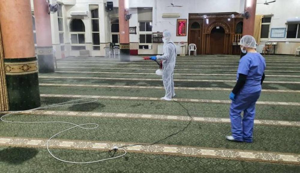 قال وكيل وزارة الأوقاف والشؤون الدينية حسام أبو الرُب الإثنين، إن الوزارة باشرت بعملية تعقيم كافة المساجد والمرافق التابعة لها بمختلف المحافظات، كإجراء وقائي لمواجهة انتشار فيروس كورونا.