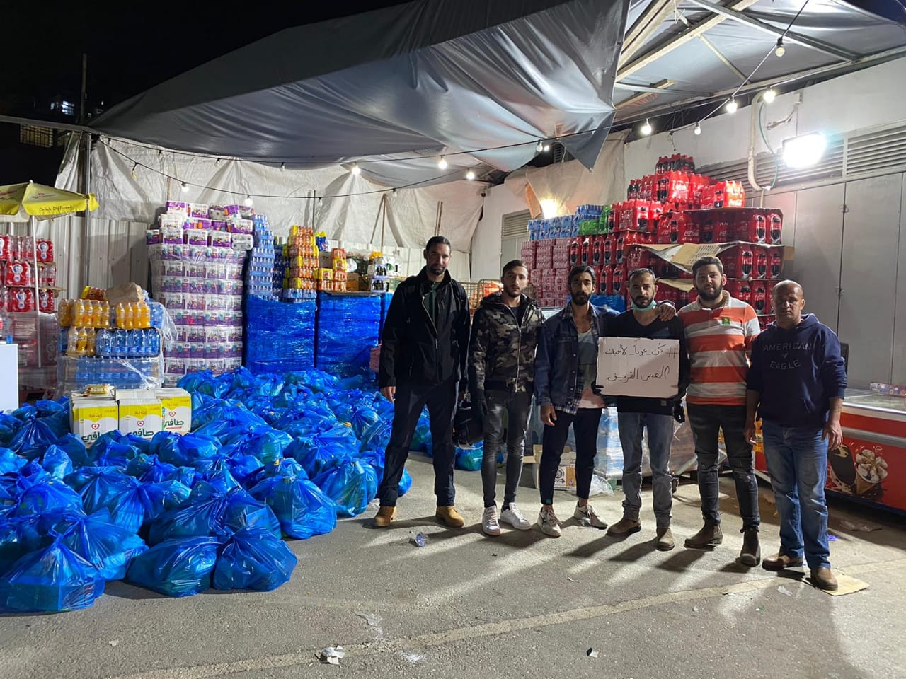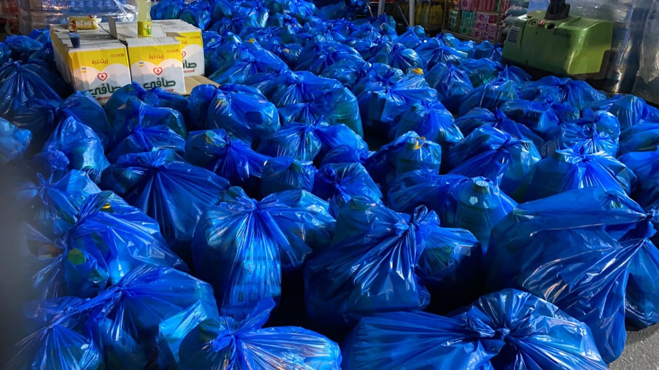 ويشارك في الحملة 40 شابًا وشابة يعلمون كخلية نحل في تغليف المساعدات الغذائية، والتي تحتوي على المواد الأساسية مثل (البقوليات، الطحين، السكر، معلبات، الشاي والحليب وغيرها)، والتي تكفي لمدة أسبوعين.