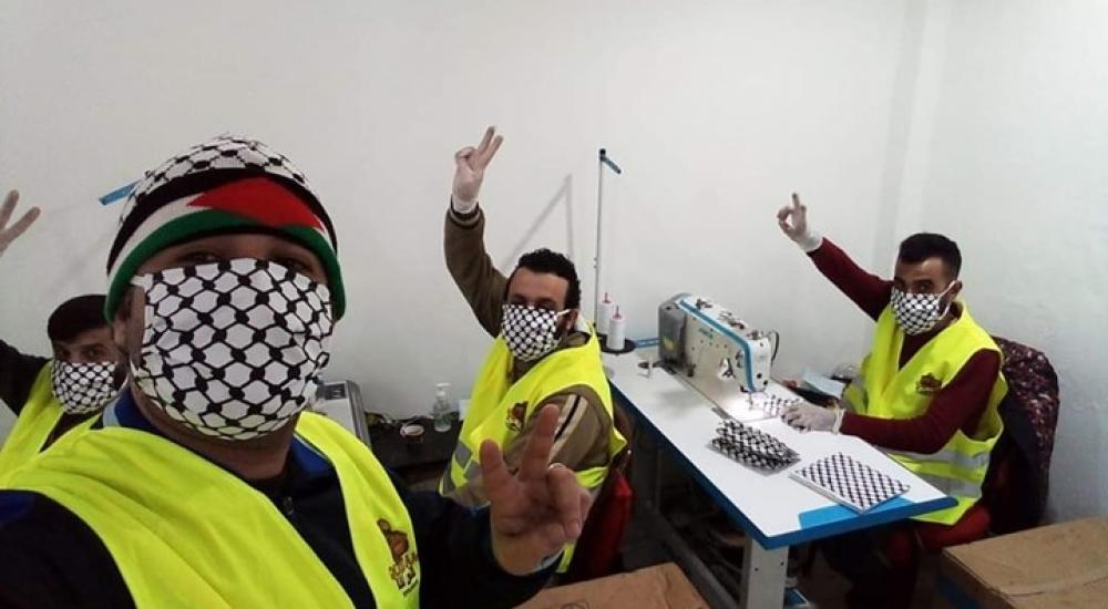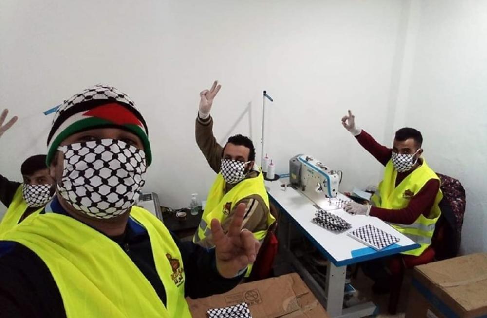 ويتم إعداد "كمامة القدس" في ورشة مؤقتة، في مخيم برج البراجنة، ووصل عدد المصنوع منها أكثر 50 ألف كمامة، خلال أيام.