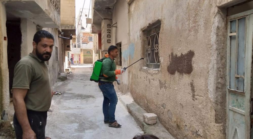 نفذت وكـالـة غوث وتشغيل اللاجئين الفلسطينيين "أونروا" بالتعاون مع الهيئة العامة للاجئين الفلسطينيين العرب حملة تعقيم وتطهير وتنظيف في المخيمات الفلسطينية بسورية، وذلك ضمن جهود مواجهة انتشار فايروس كورونا المستجد.