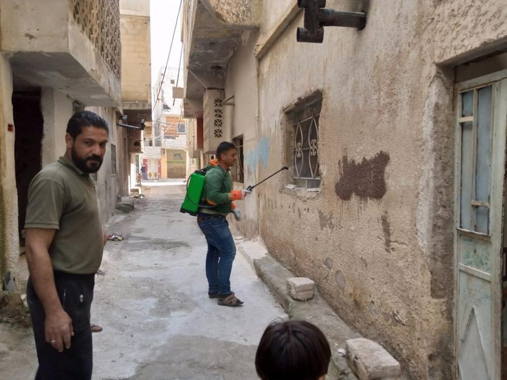 وقال أحد المتطوعين في الحملة، إنها نُظمت في كافة المخيمات الفلسطينية في درعا، حمص، حماة، اللاذقية، حلب، وشملت رش المواد المُعقمة والمُطهرة في الشوارع الرئيسية والفرعية، وسيارات النقل العامة ومكاتب ومدارس وعيادات وكالة الغوث.