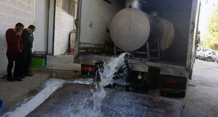 كان مشهدا مستفزا قيام مزارعين بسكب كميات من الحليب على الأرض أمام أحد مصانع الألبان بمدينة نابلس شمال الضفة الغربية المحتلة.