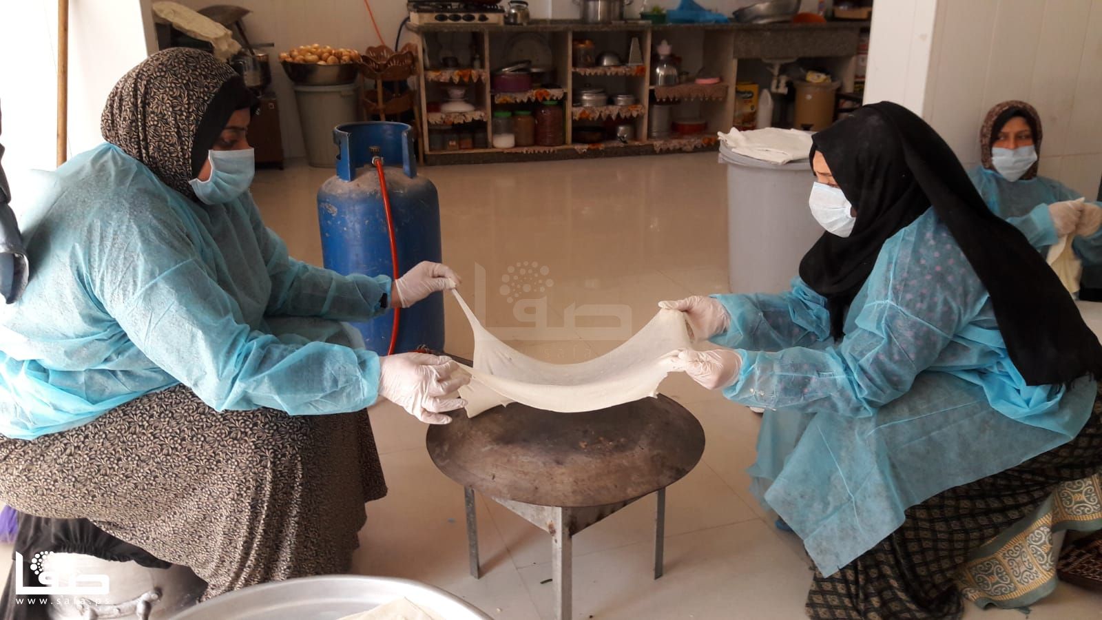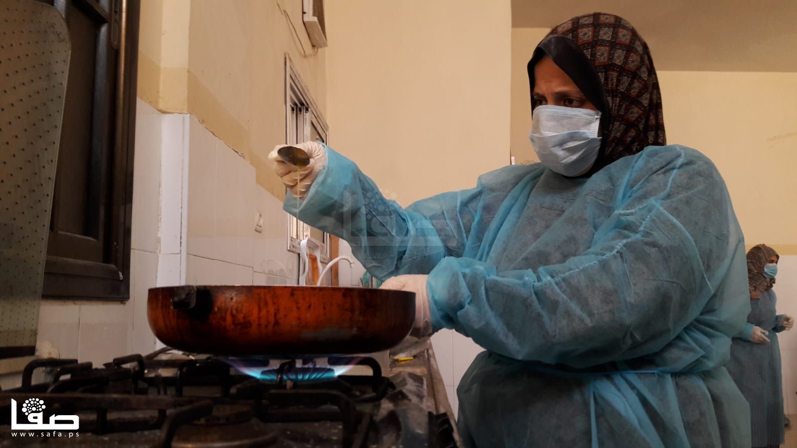 فظروف الجائحة العالمية التي لا يمكن أن يتحداها أحدًا سوى بالحجر المنزلي؛ لم تمنع تلك السيدّة من مواصلة العمل وتجهيز كميات يطلبها السوق المحلي، فحولت المطبخ لمركز انتاجي مع المحافظة على السلامة بالابتعاد في العمل مسافة كافية عن بعضهُنّ البعض وارتداء مِعطف طبي وقفازات وكمامات طيلة ساعات العمل.