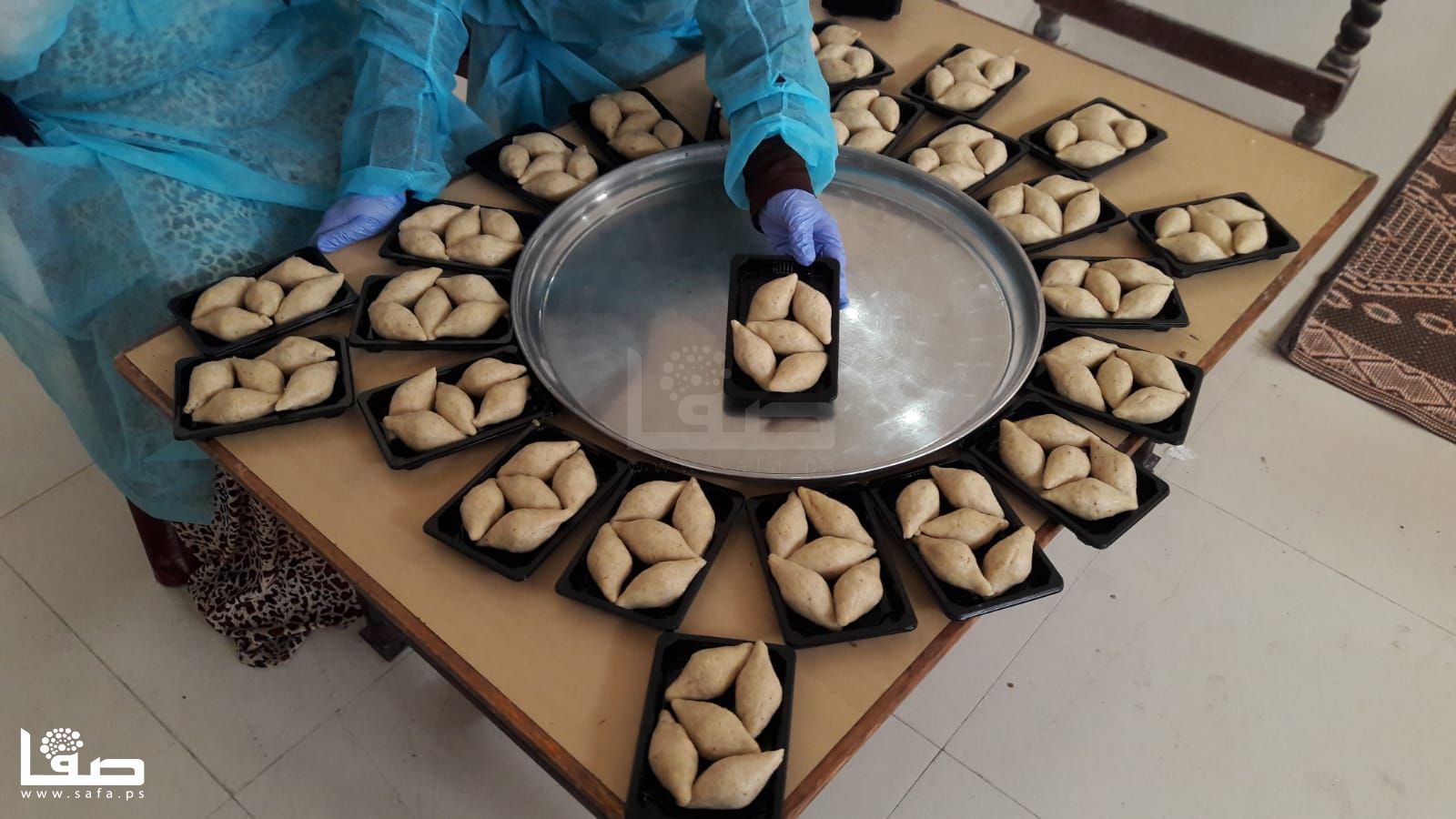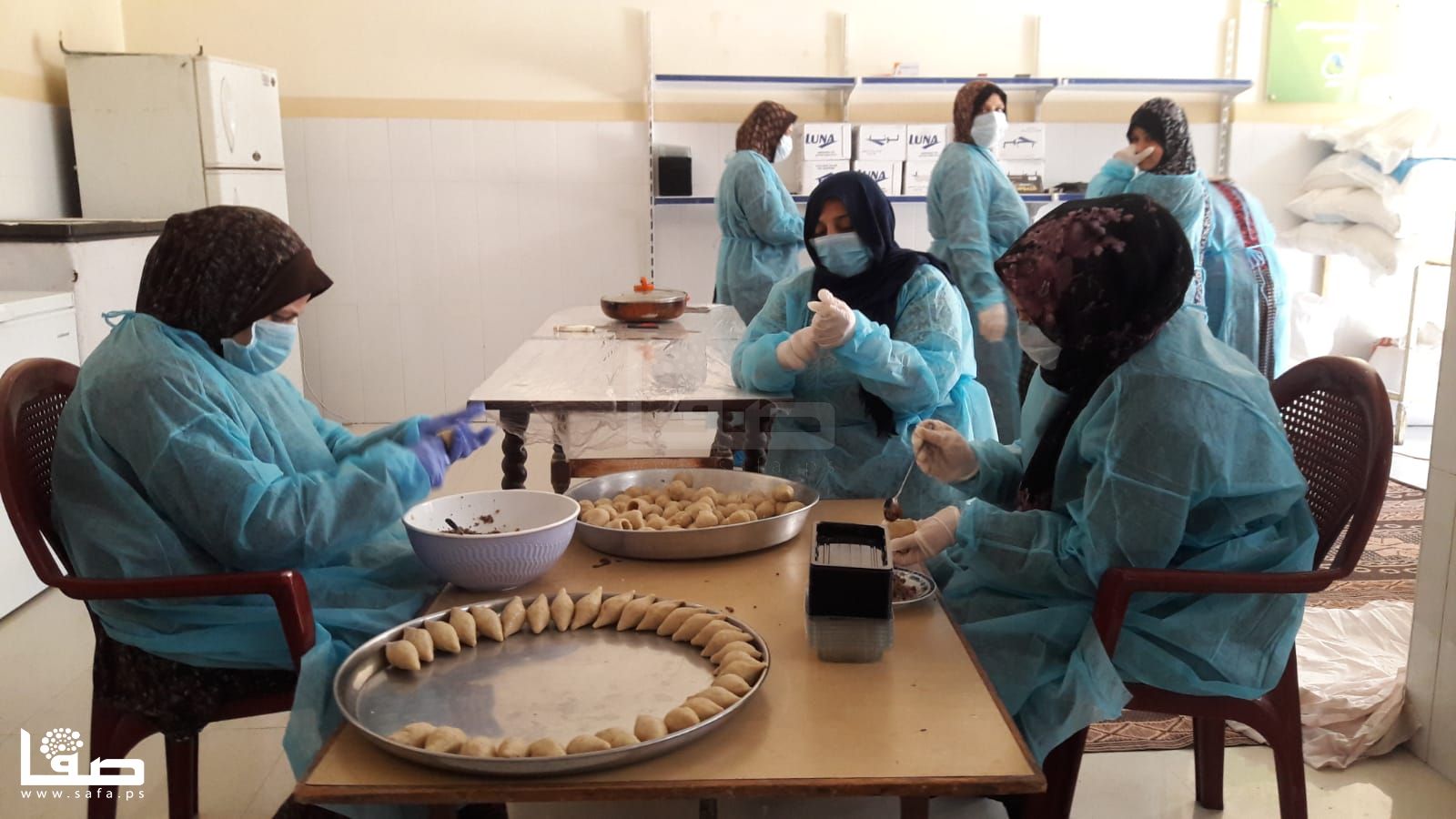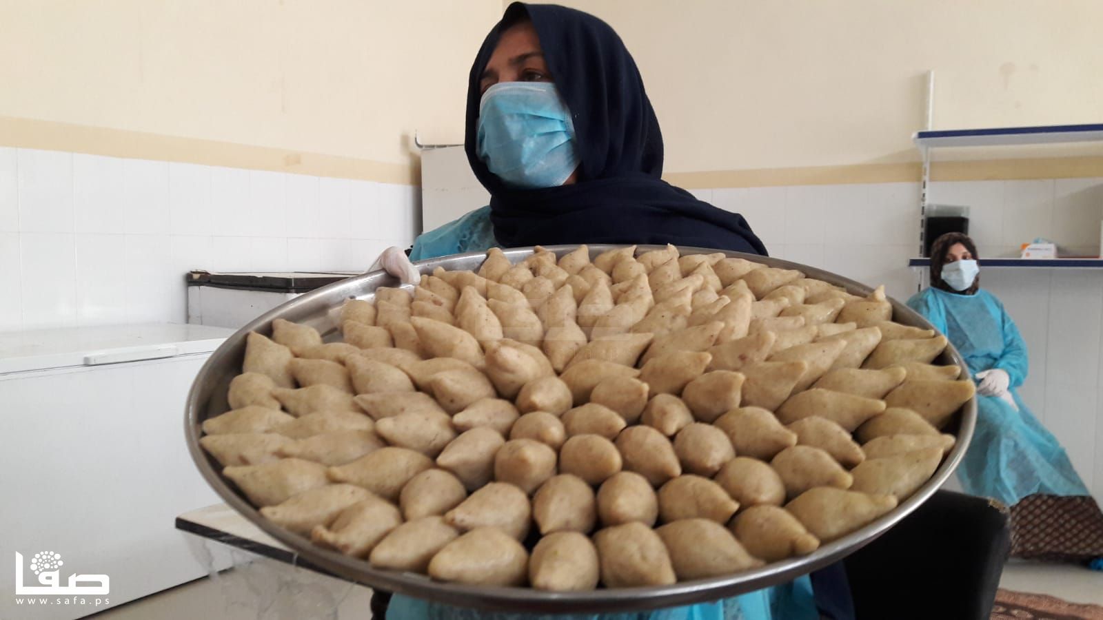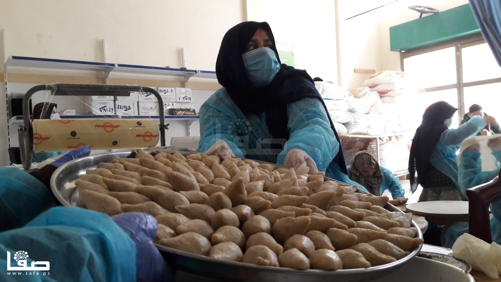 تنهمك نسرين اربيع (34عامًا) في تحضير كميات كبيرة من "السمبوسك" مع عشرة أخريات من زميلاها اللواتي يتعاونّ لتجهيز وصفاتٍ رمضانية أخرى ووضعها على الرفوف وفي الثلاجات لتوزيعها لاحقًا على المتاجر، وذلك في مطبخٍ مؤسساتي بخان يونس.
