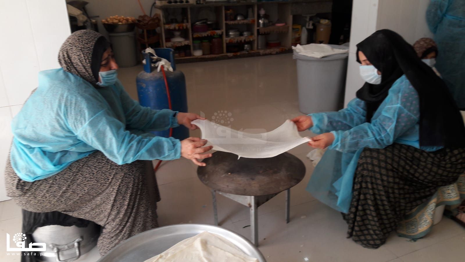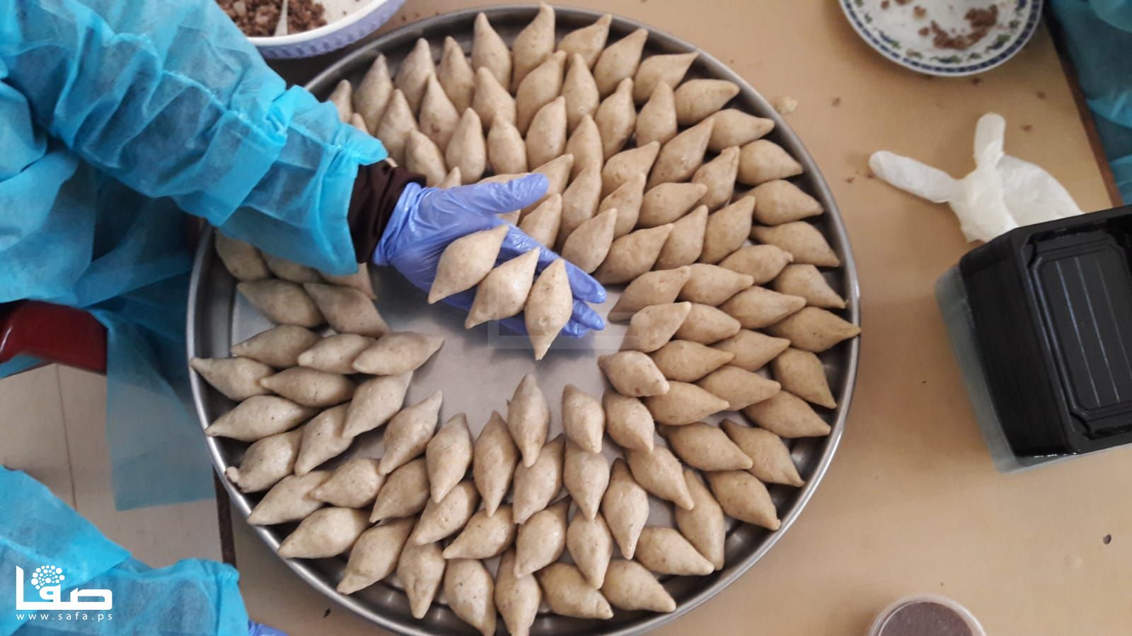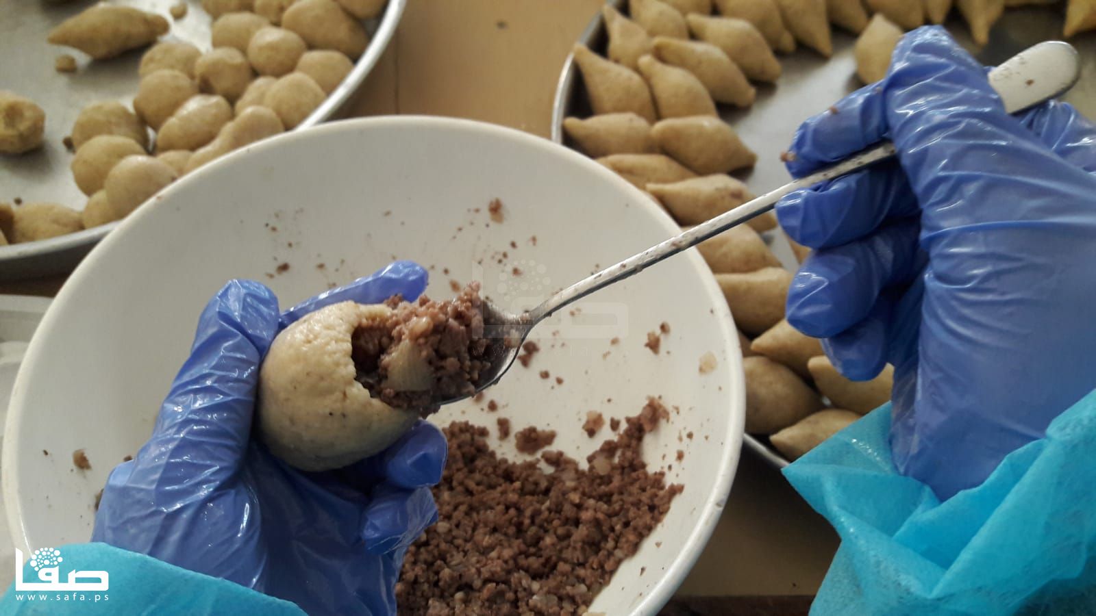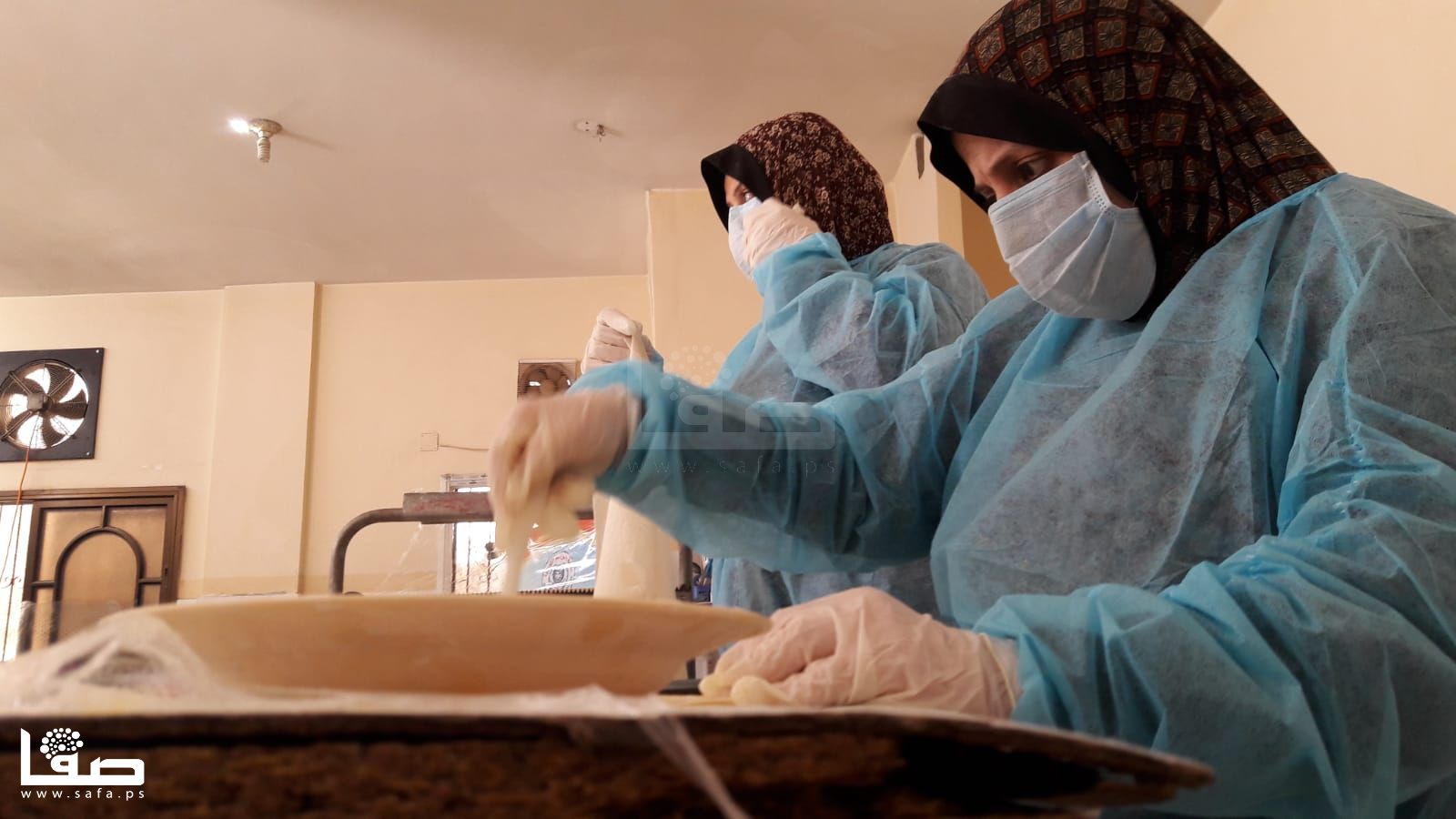 كما أنها لم تعتدّ على ارتداء كمامة الوجه التي تزيلها بين فينة وأخرى لتنال قسطًا من الراحة وتستنشق هواءً بمعزل عن تلك الكمامة ثم تعود للعمل مُجدّدًا؛ كما الحال لباقي زميلاتها اللواتي اعتدنّ على أن تمزج أيديهنّ بالزبدة والدقيق وبقية مكونات صناعة الكبة والسمبوسك والمفتول.