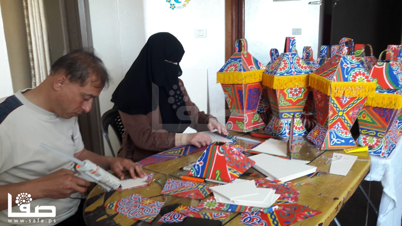 يُمسك الزوج بيده مقصًا ويقطع قطع القماش المطلوبة ويثبت فوقها ورقًا مقوى بشكلٍ هندسي، ثم يضعُ عليه اللاصق، ويسلمه للزوجة، التي تقوم بدورها بتجميع مُجسم الفانوس، ووضعه على طاولة يجلسون خلفها، تحولت لمشغل يومي لهم، كي يجف، فيما يتعاون الأبناء الصغار في التقطيع ووضع المُلصق، والزينة على جوانب المُجسم.