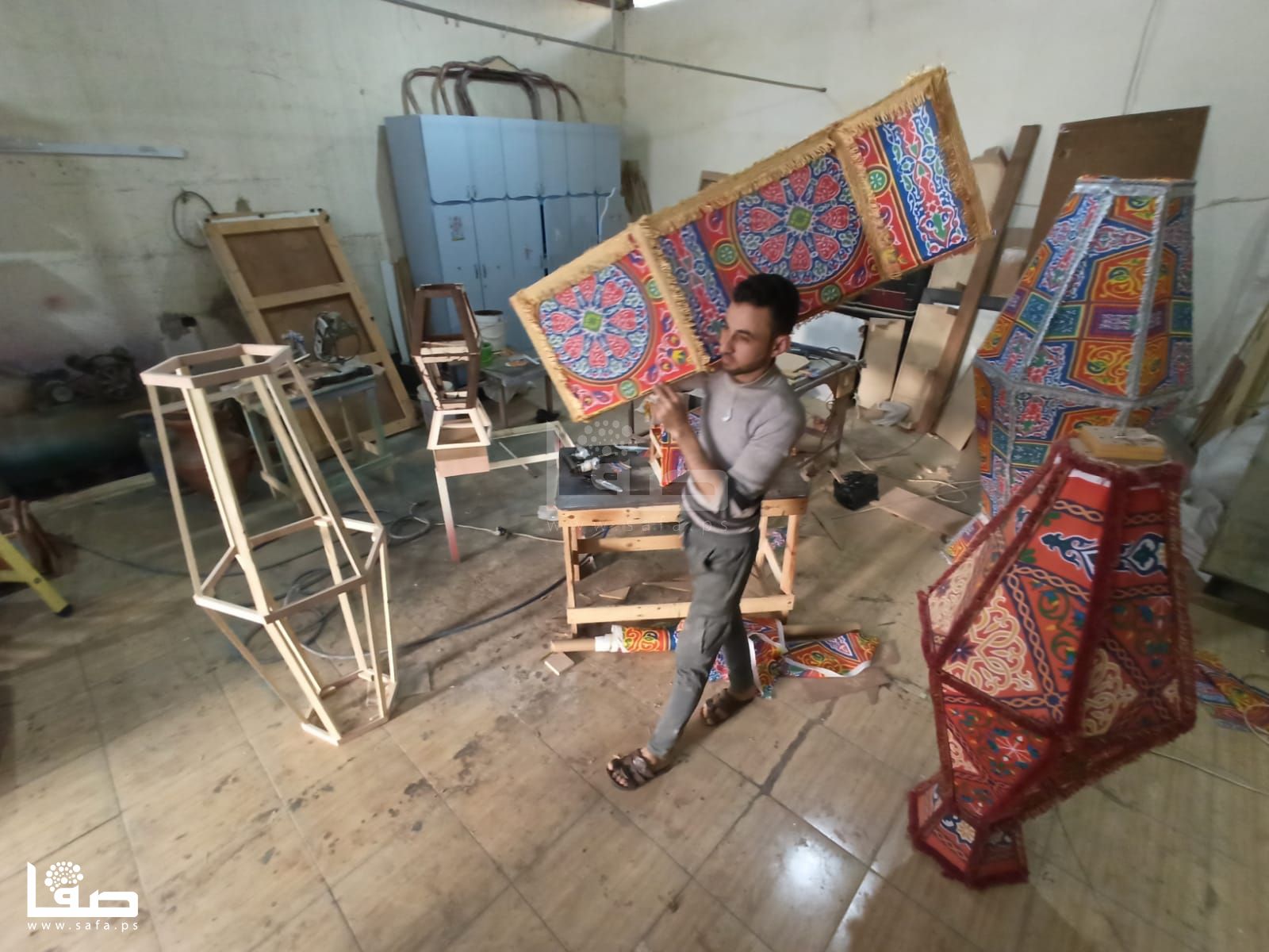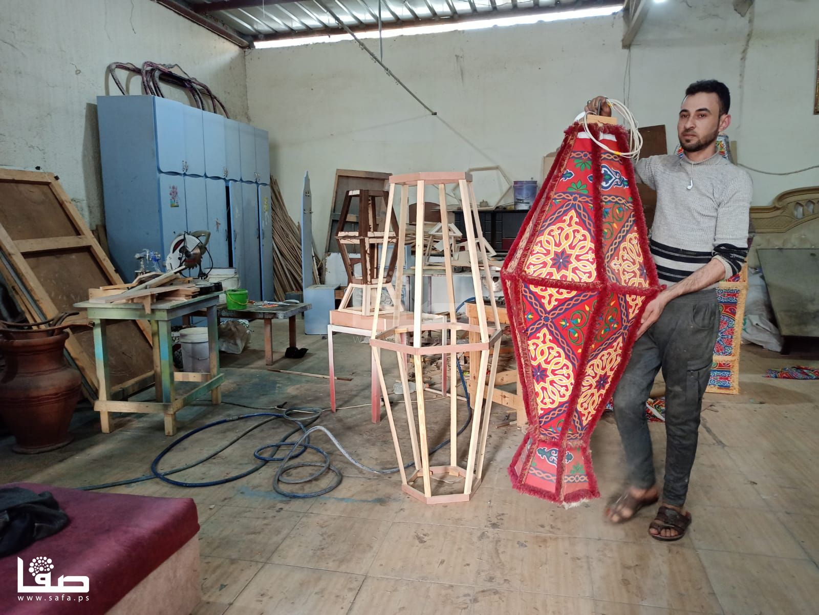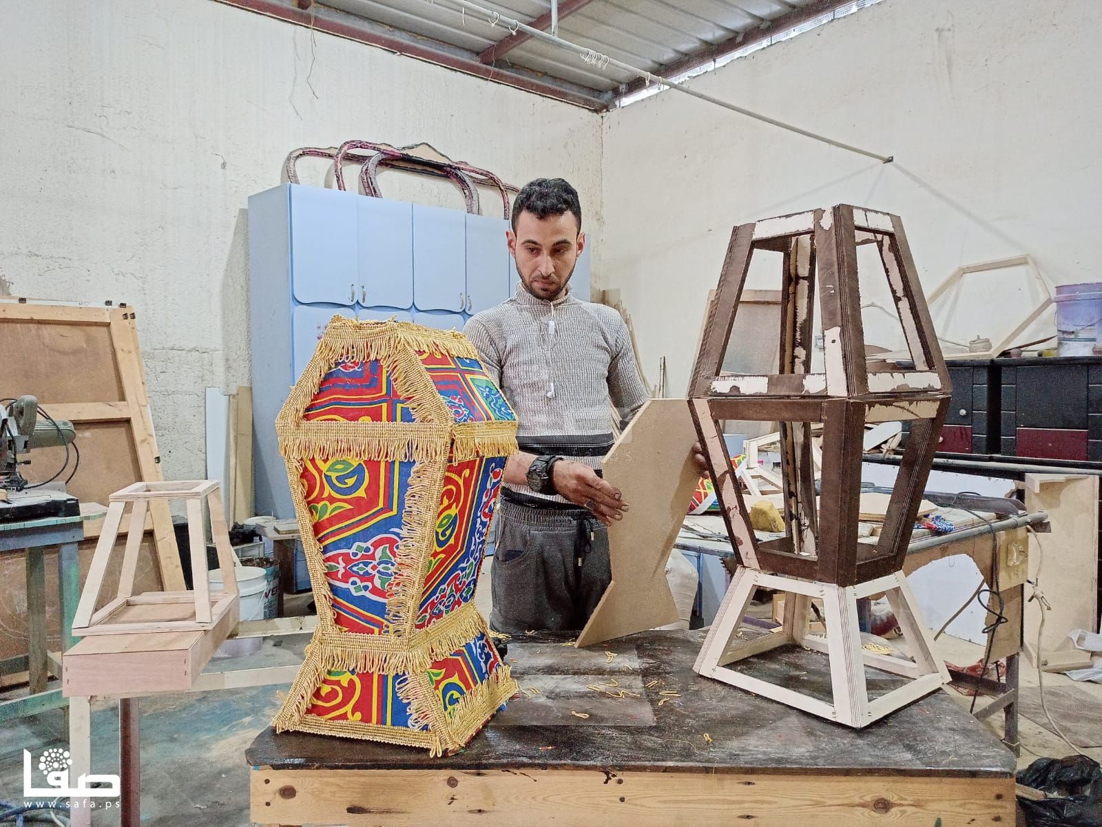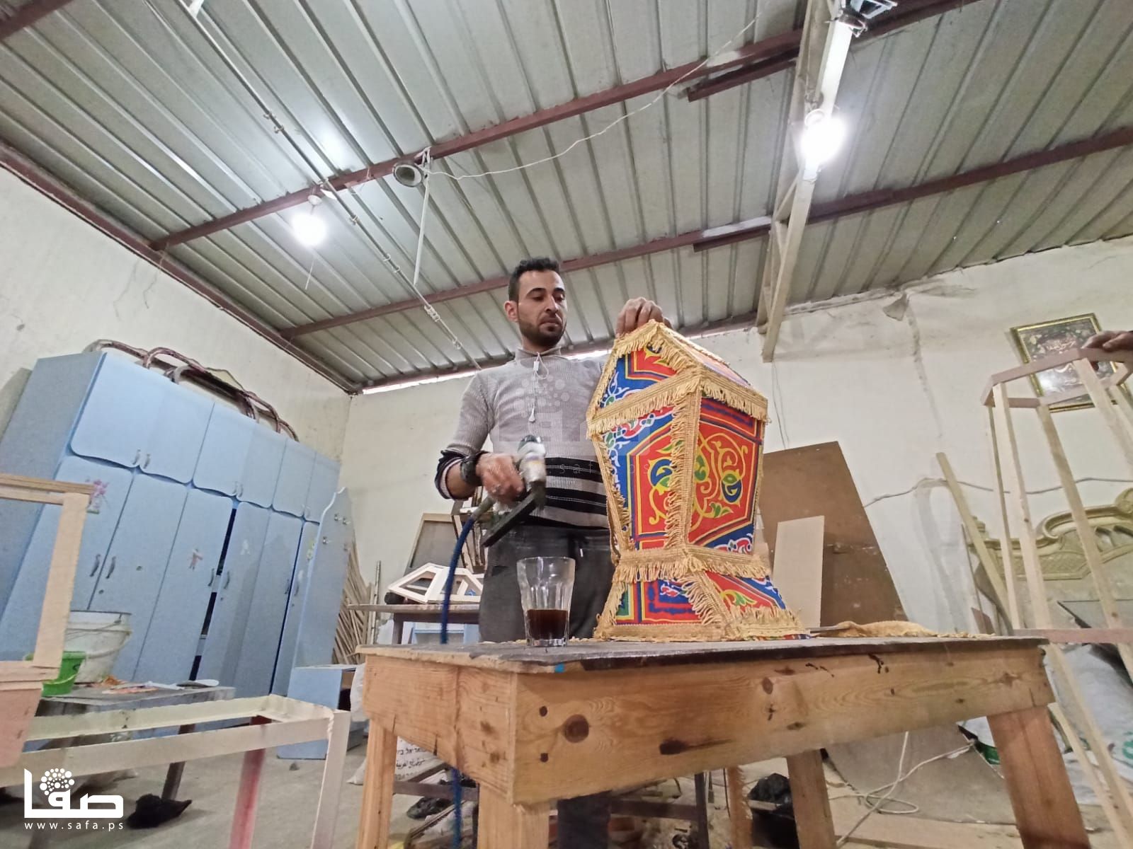 وبدأ محمد شراب، أحد هواة صناعة الفوانيس الخشبية في محافظة خان يونس جنوبي قطاع غزة، صناعة الفوانيس كبيرة الحجم قبيل شهر رمضان، وعرضها أمام منجرته.