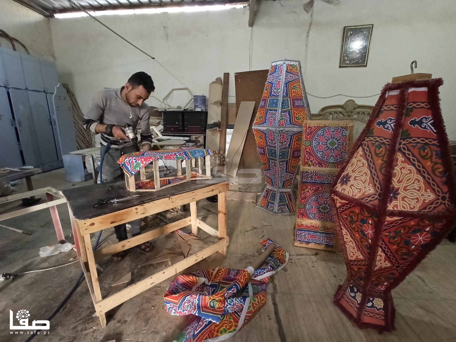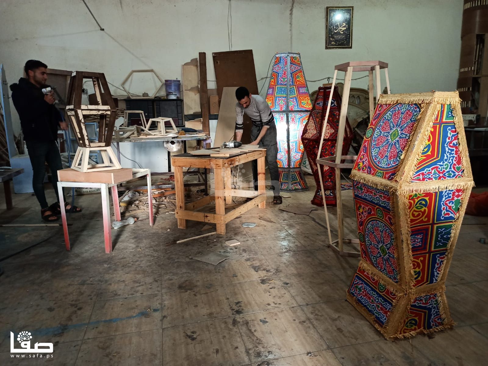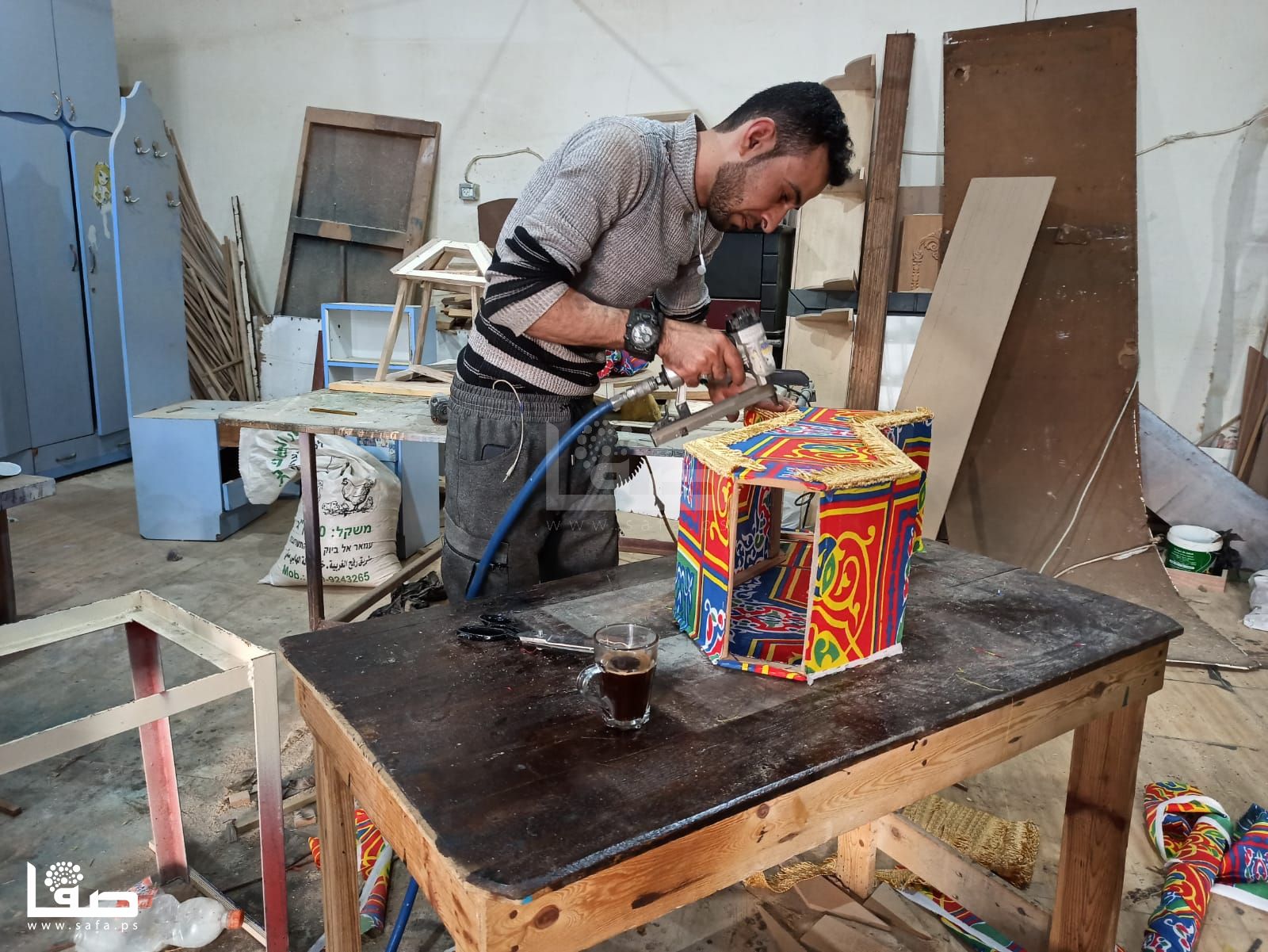 وبدأ محمد شراب، أحد هواة صناعة الفوانيس الخشبية في محافظة خان يونس جنوبي قطاع غزة، صناعة الفوانيس كبيرة الحجم قبيل شهر رمضان، وعرضها أمام منجرته.