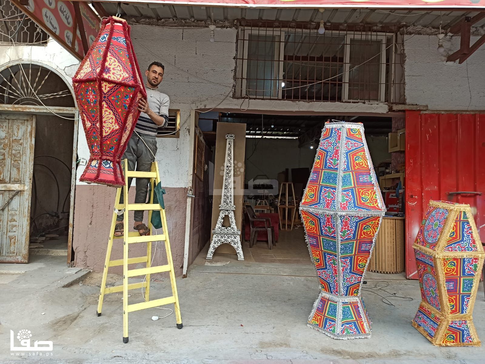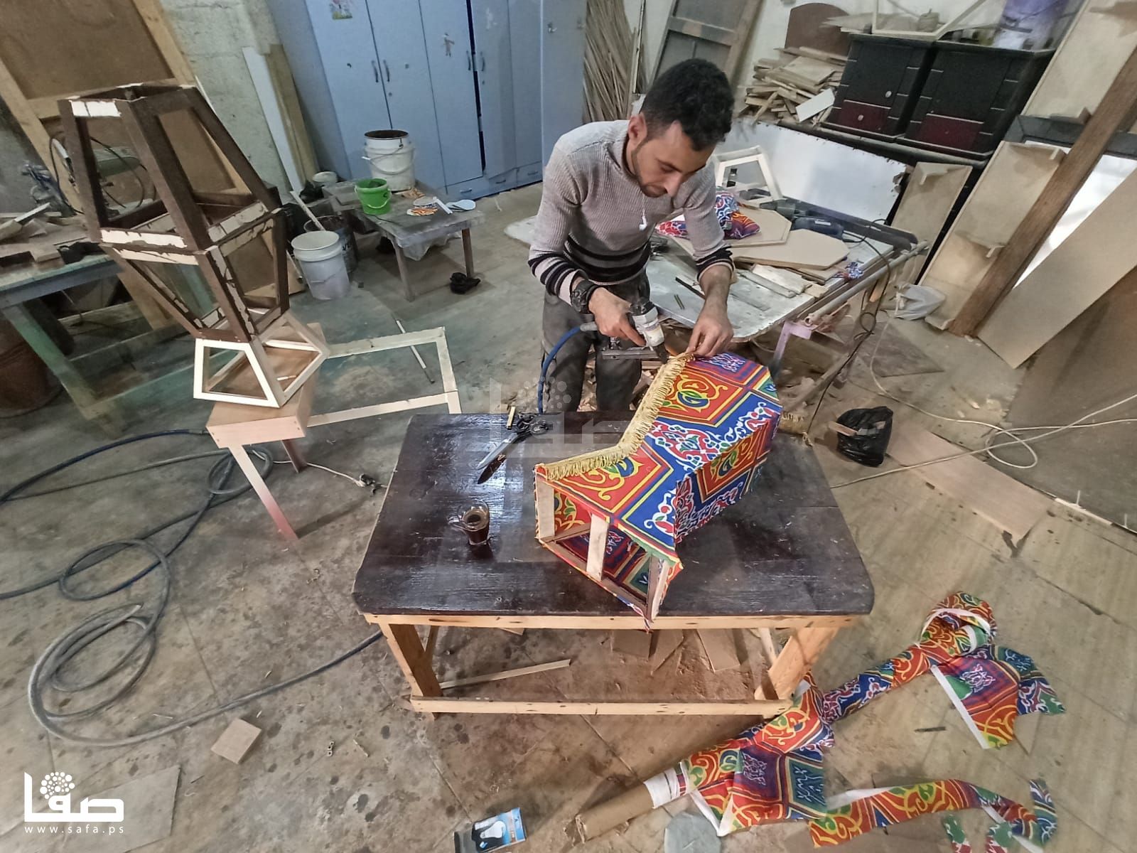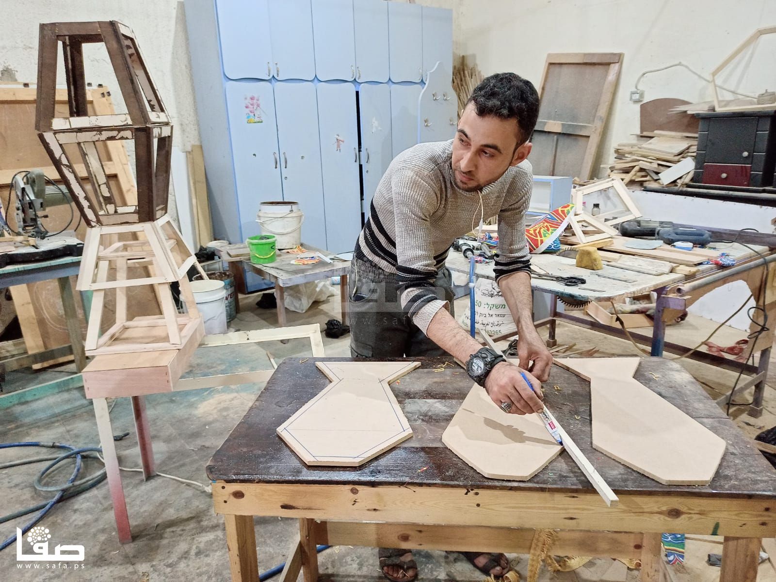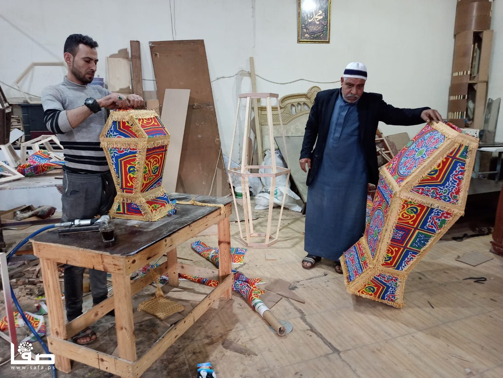 وبدأ محمد شراب، أحد هواة صناعة الفوانيس الخشبية في محافظة خان يونس جنوبي قطاع غزة، صناعة الفوانيس كبيرة الحجم قبيل شهر رمضان، وعرضها أمام منجرته.