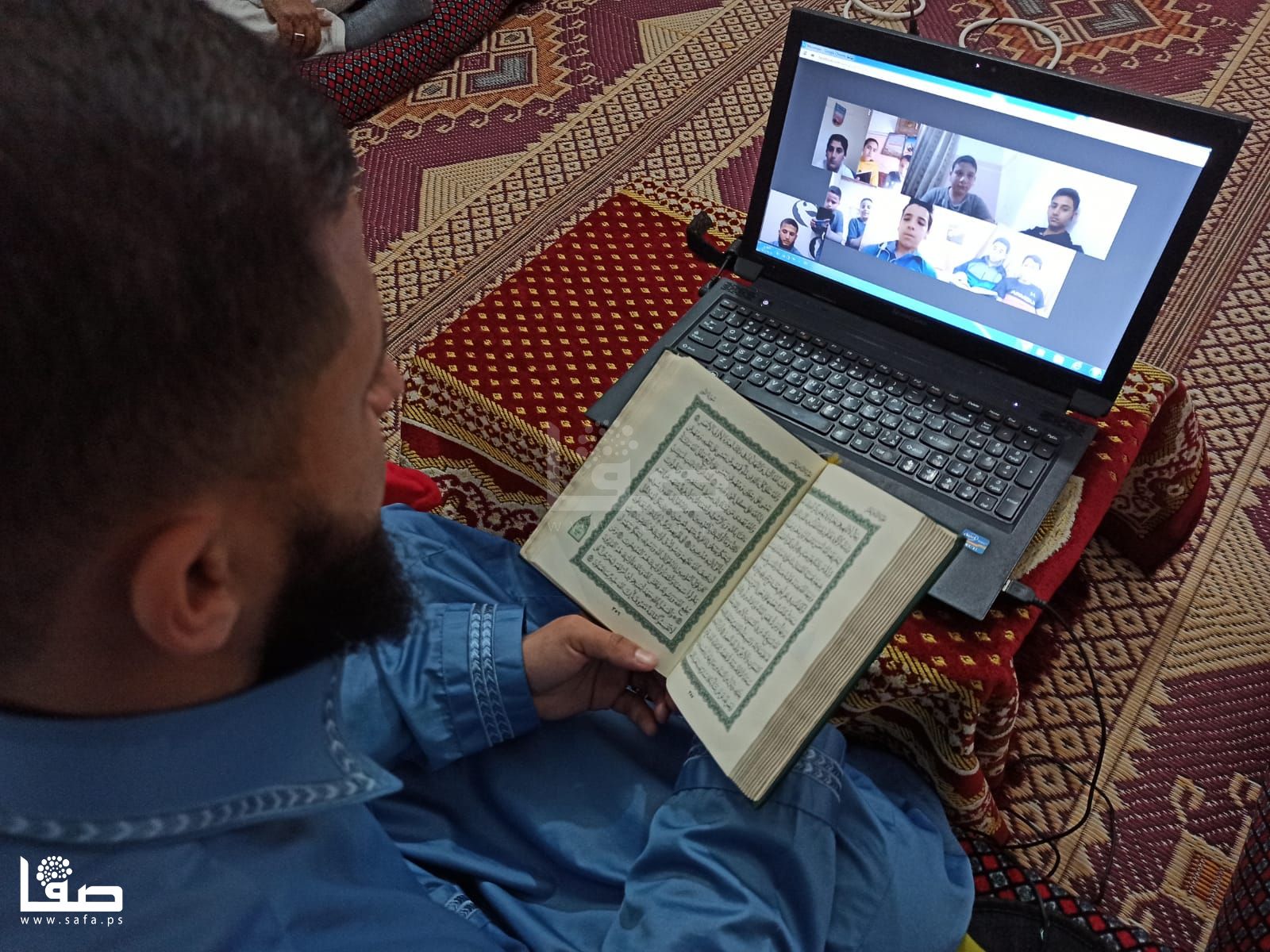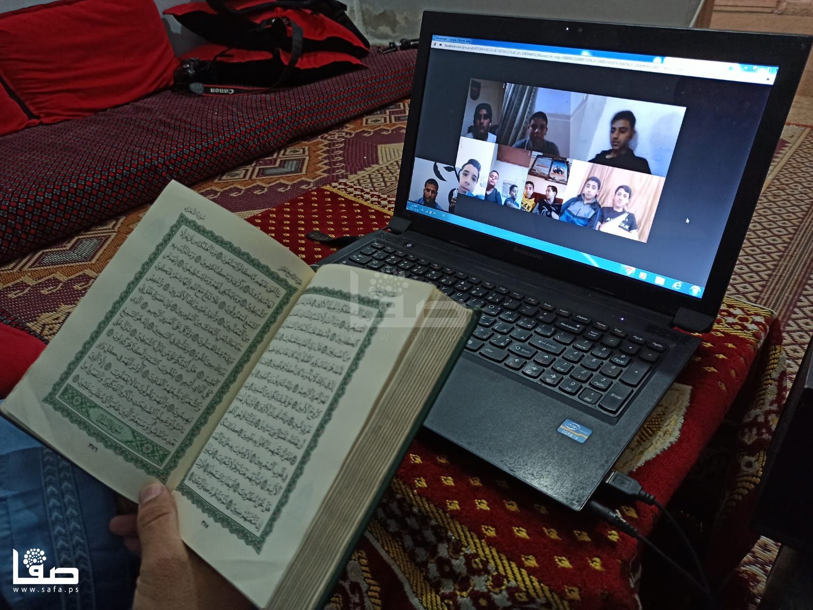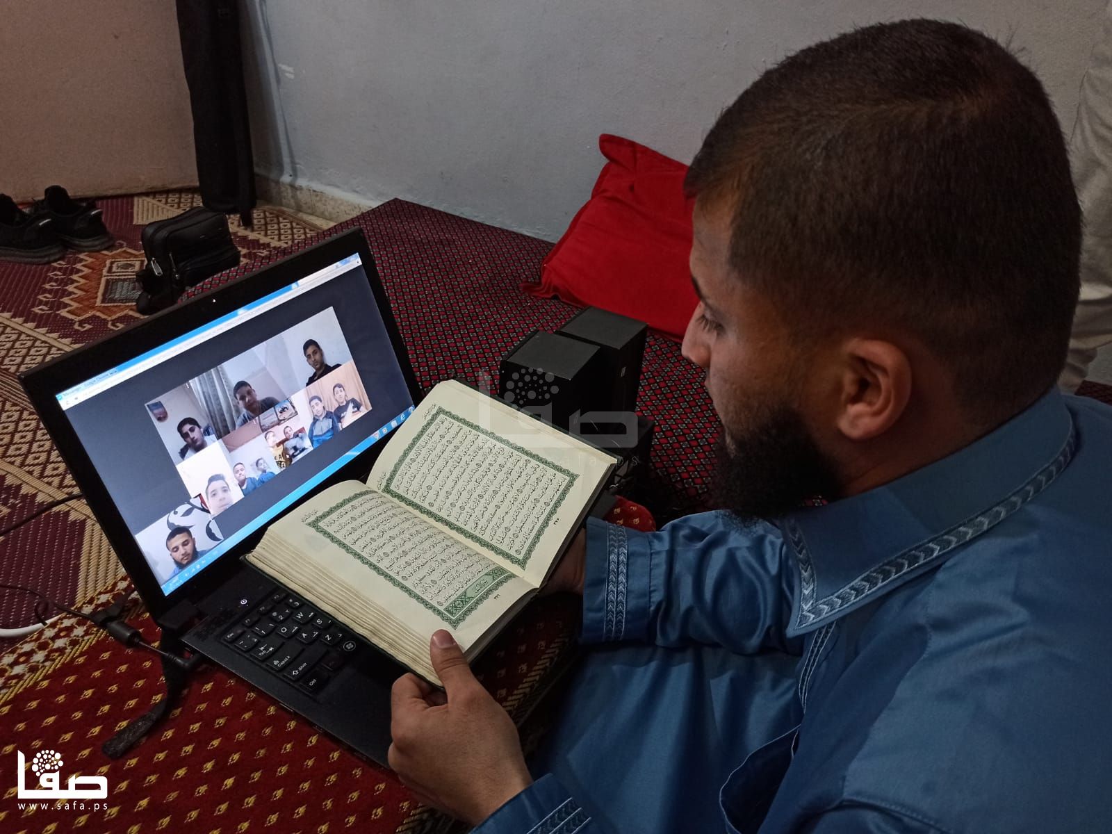 يتلو المُحفظ لكتاب الله أحمد الزاملي (31عامًا) بصوتٍ عذب، آياتٍ من سورة الشعراء، على عددٍ من طلبته، الذين يحفظون القرآن الكريم، من أمام شاشة حاسوبه الشخصي، ثم يرددون من بعده تلك الآيات لتأكيد حفظها ونُطقها بشكلٍ صحيح، بعد أن حالت "كورونا" دون اجتماعهم في حلقة واحدة بأحد المساجد كسابق عهدهم.