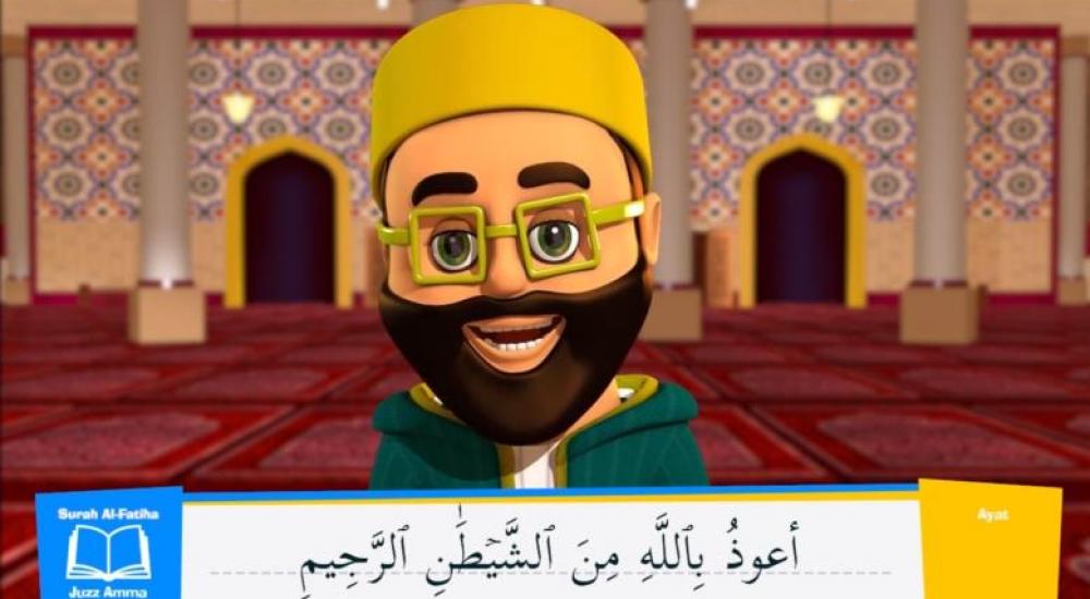 ويظهر مقطع مصور من الرسوم المتحركة طفلا أمام سجادة صلاة في حجرته. ويقول "فلنقف مستقيمين صفاً واحدا متساوياً ولنتوجه صوب الكعبة في مكة". لغة مفهومة للصغار، حيث تشرح الشخصية ثلاثية الأبعاد الخطوات الأولى لتعليم أداء الصلوات الخمس المفروضة عند المسلمين مثل رفع كفي اليدين عند مستوى الكتفين مع ترديد النداء "الله أكبر".