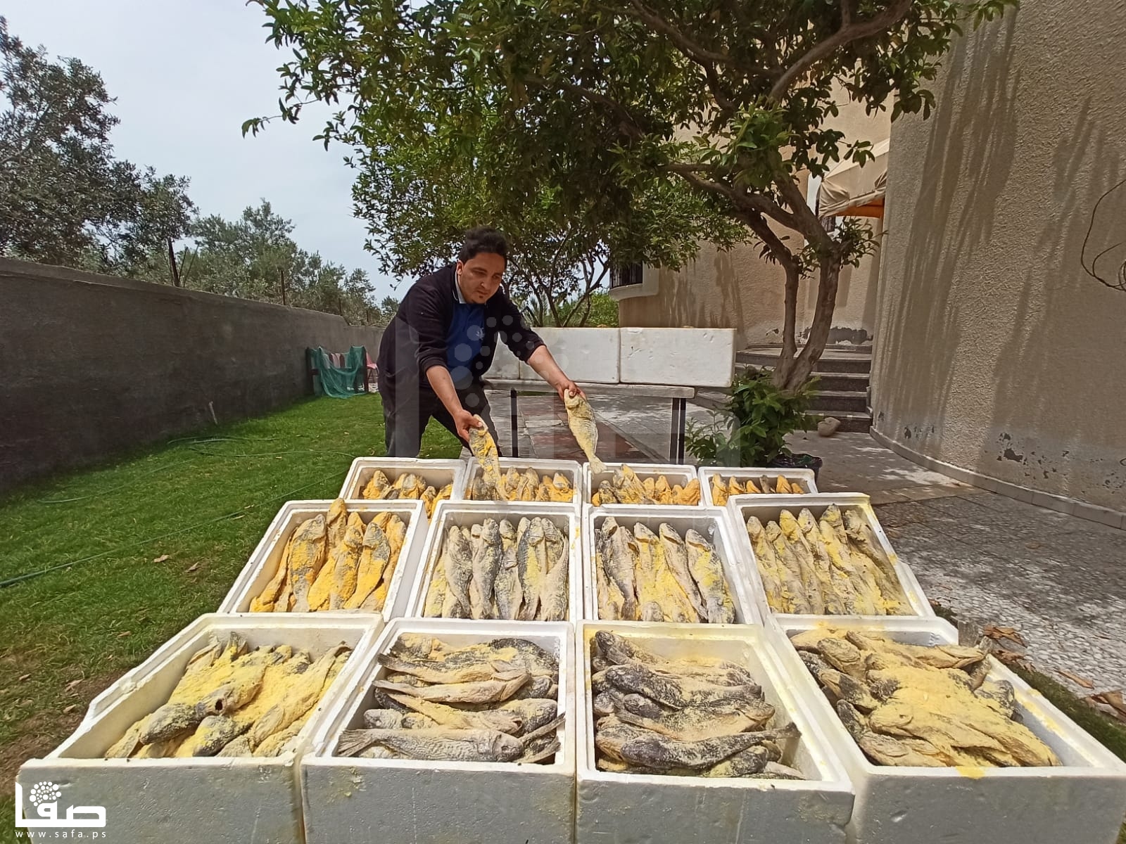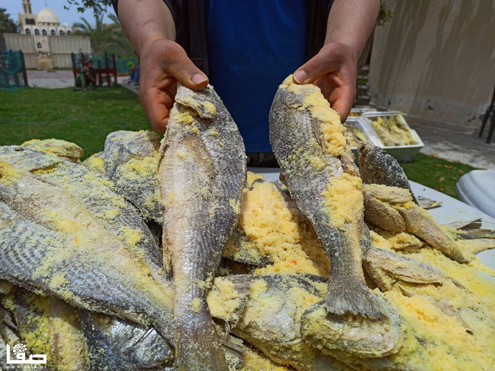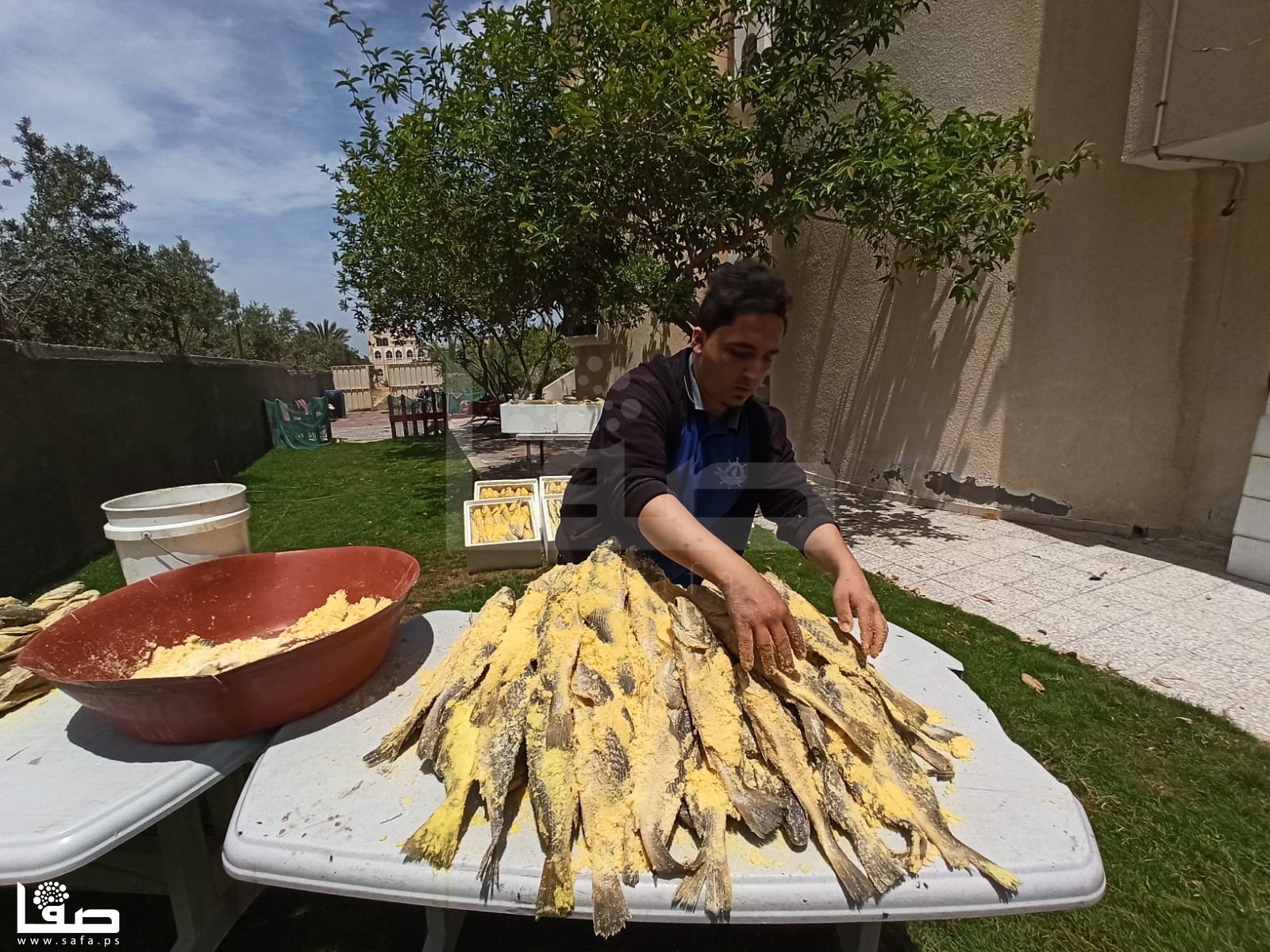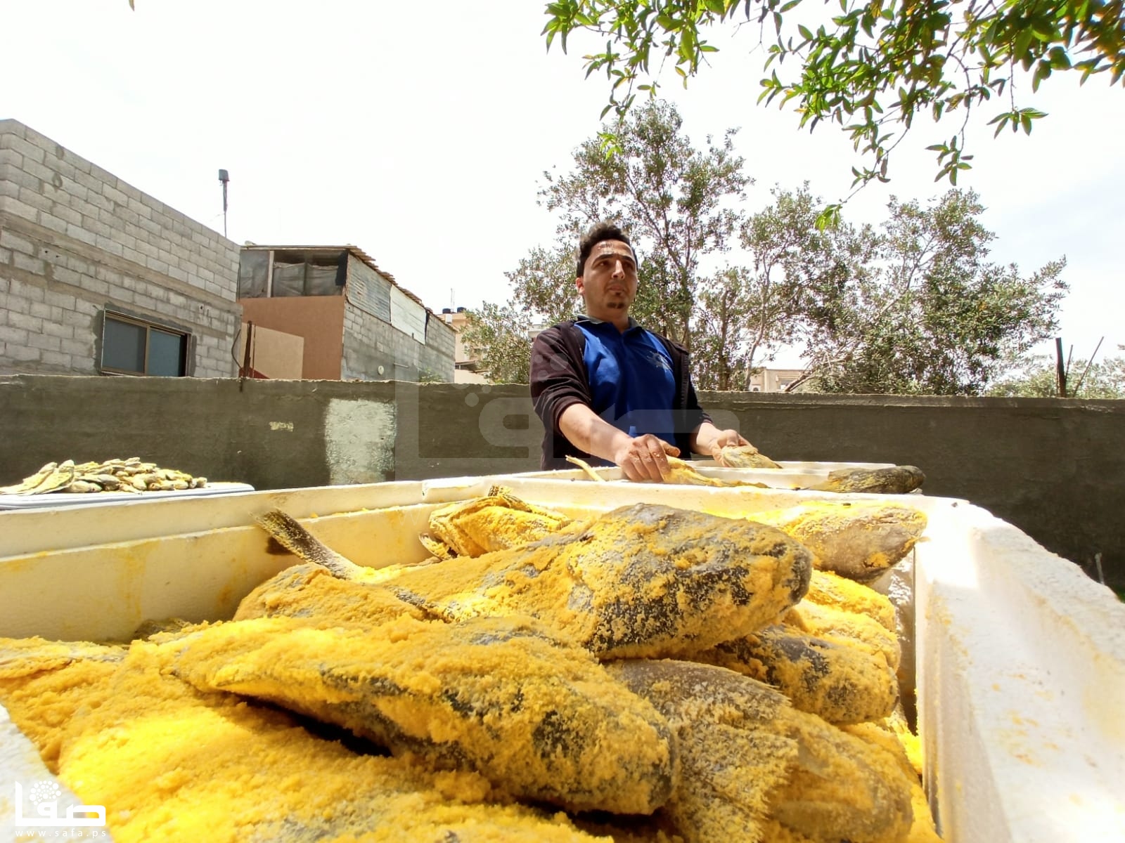 قبل حلول عيد الفطر بنحو ثلاثة أشهر، يستعد الشاب عبد الله أبو حصيرة لإعداد السمك المملح "الفسيخ"، الذي يعُد الوجبة المفضلة لكثير من الفلسطينيين في أول أيام العيد.