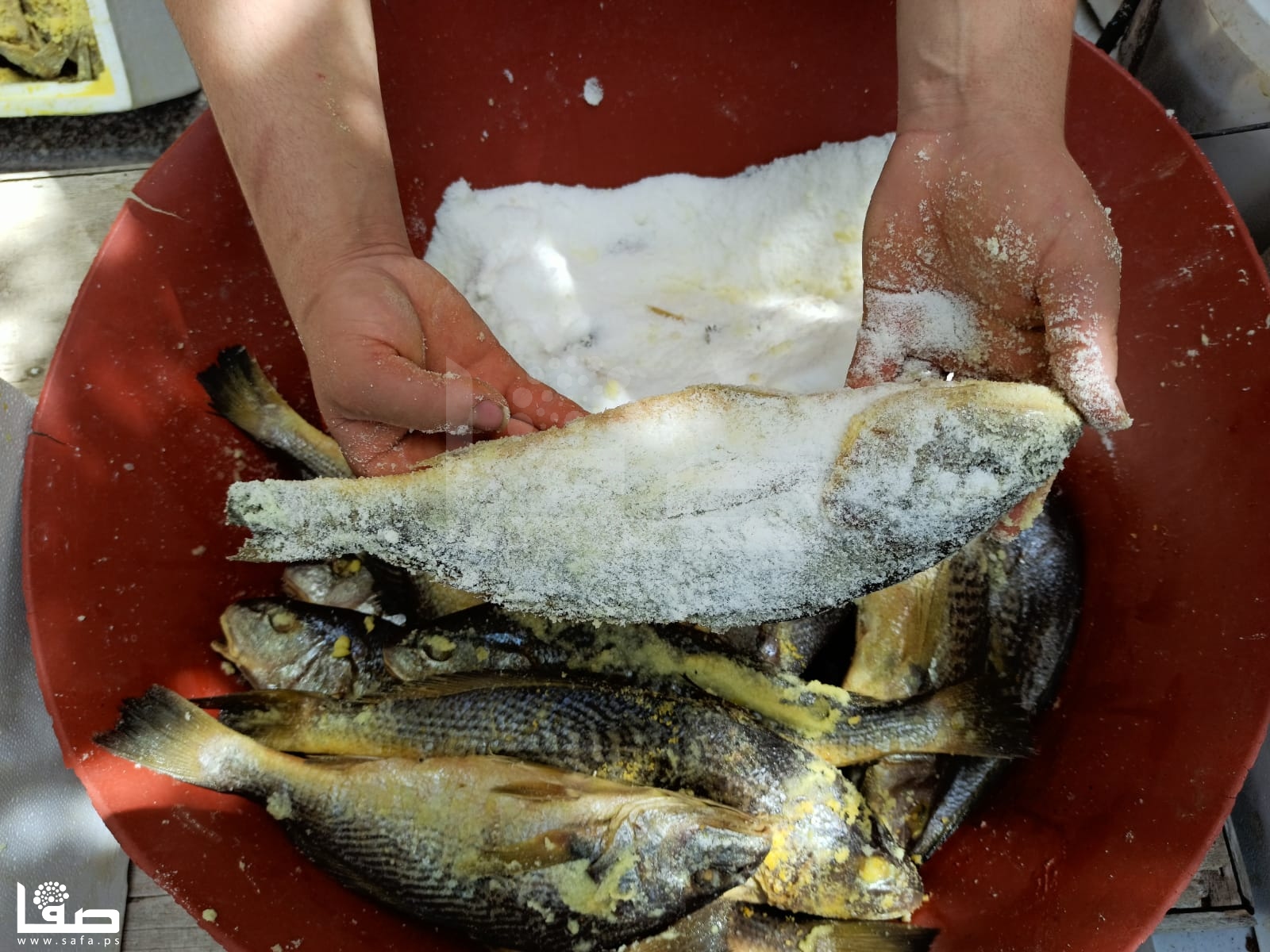 بدا صانع الفسيخ ماهرًا في تحضير الكميات الكبيرة وحده، دون معاونة من أحد، إذ أحضر أسماك "الجرع" المُثلجة، والبوري الطازج إلى منزله لإعداد الكميات المطلوبة، وفق رغبات الزبائن.
