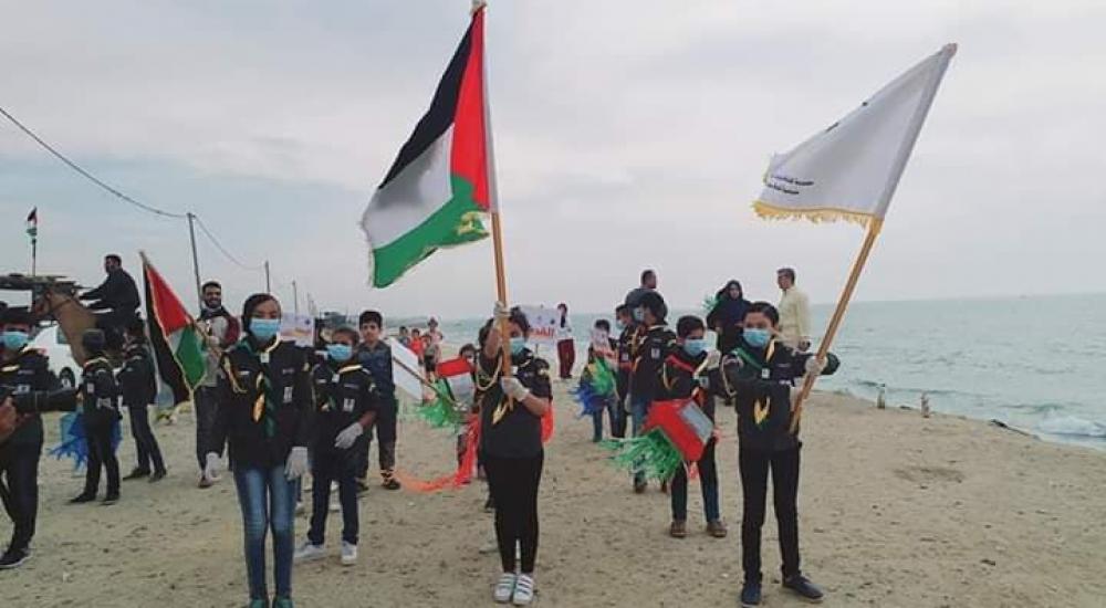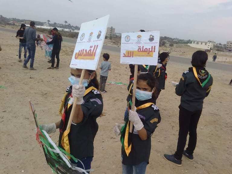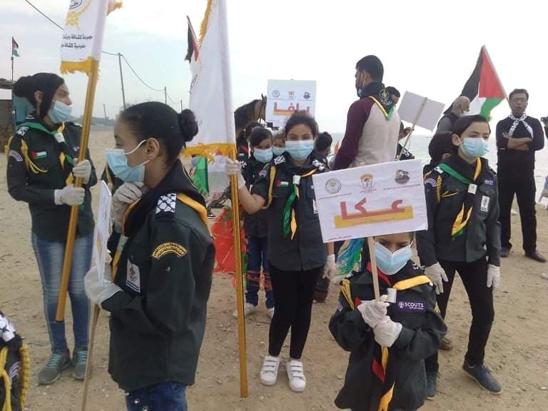 وتزامن ذلك مع موسيقى الفرقة الكشفية التي عزفت الأناشيد الفلسطينية المؤكدة على حق العودة، وعدم التفريط في أي شبر من الأرض.