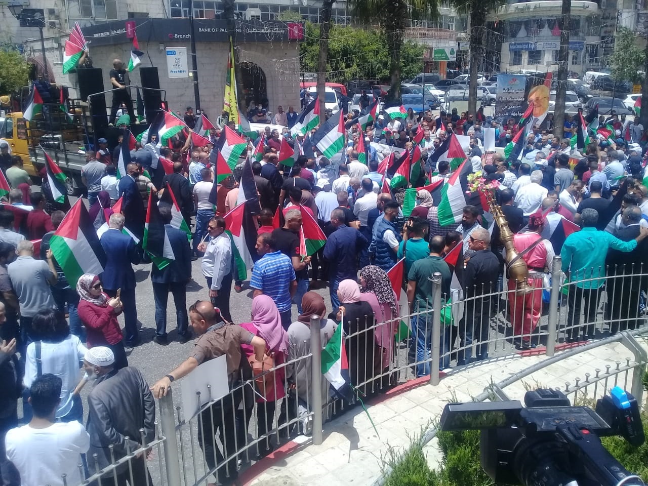 وشارك مئات المواطنين في الوقفة إلى جانب مشاركة قيادات من الفصائل، الذين عبروا عن رفضهم لمخطط الاحتلال بضم أجزاء من مناطق "ج" وضم الأغوار.