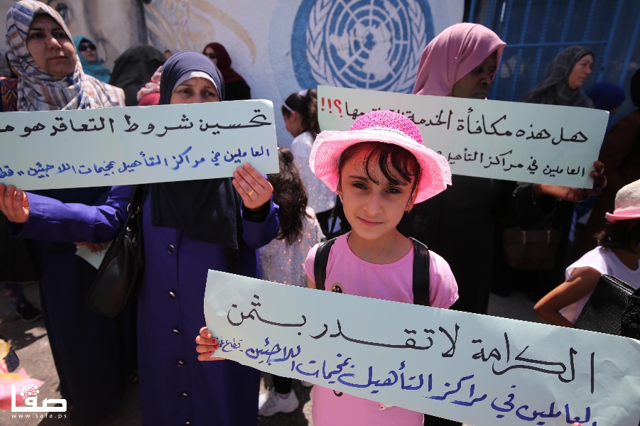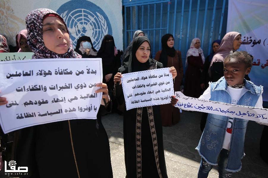 وتجمّع هؤلاء أمام مقر "أونروا" الرئيس غربي مدينة غزة برفقة أطفالهم، حاملين لافتات تدعو لإعادتهم لأعمالهم، وأخرى تحذّر من استمرار فصلهم وإنهاء عقودهم بطريقة "غير قانونية".