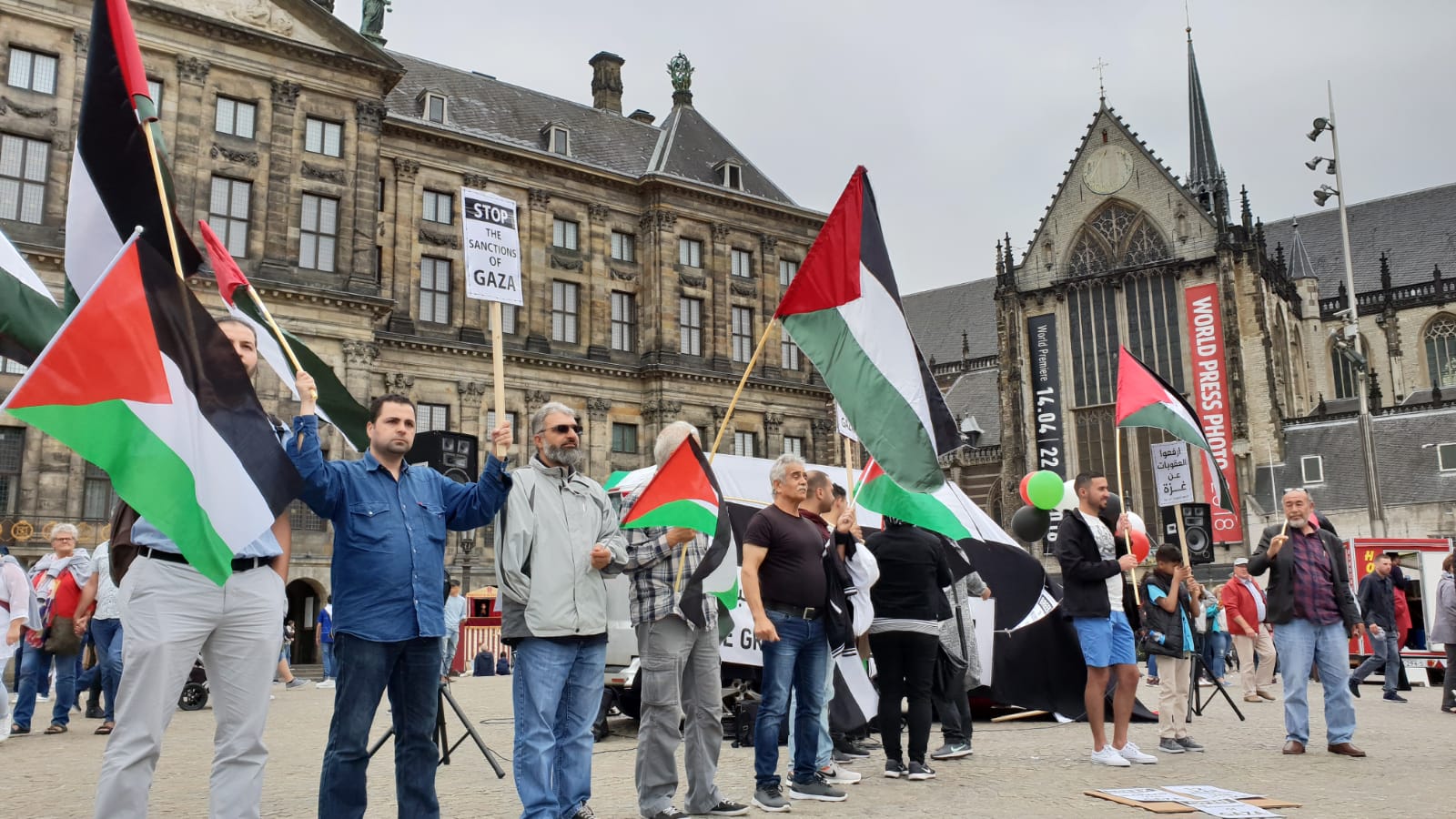 وشارك في التظاهرة التي نظمتها هيئات مجتمع مدني داعمة لفلسطين، مئات الهولنديين وأفراد من الأقليات في هولندا.