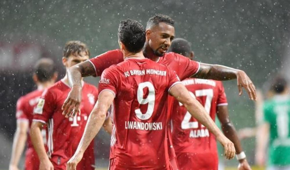 توج فريق بايرن ميونيخ بلقب الدوري الألماني لكرة القدم للموسم الثامن على التوالي، بعد الفوز على مضيفه فيردر بريمن بهدف نظيف مساء الثلاثاء، ضمن منافسات الجولة 32.