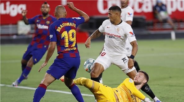 اقتنص فريق إشبيلية تعادلاً ثمينًا بدون أهداف من أنياب ضيفه برشلونة خلال مواجهة الفريقين مساء الجمعة، في إطار منافسات الجولة 30 من الدوري الإسباني لكرة القدم "الليجا".
