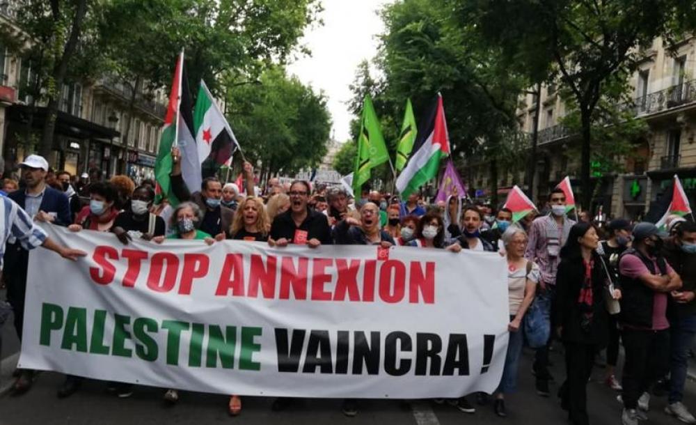 شهدت عدة مدن فرنسية أبرزها العاصمة باريس السبت مظاهرات للتنديد بالخطة الإسرائيلية لضم أراض فلسطينية، والمزمع تنفيذها خلال الأيام القليلة القادمة.