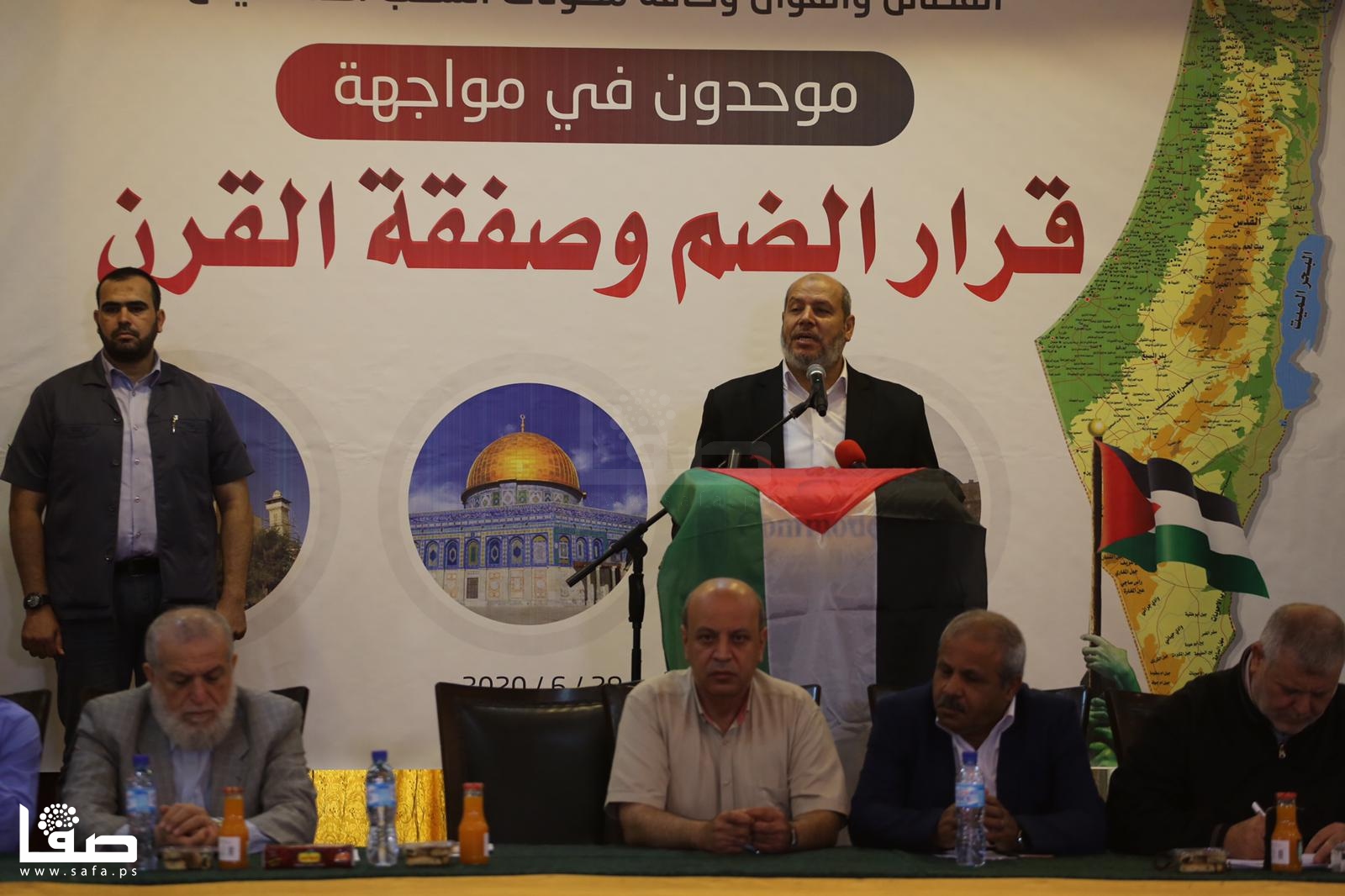 جاء ذلك خلال لقاء الوطني "موحدون في مواجهة قرار الضم وصفقة القرن" نظّمته الفصائل بمدينة غزة، وسط حضور ممثلين عن الكل الوطني وقضاة ومسيحيين بغزة.