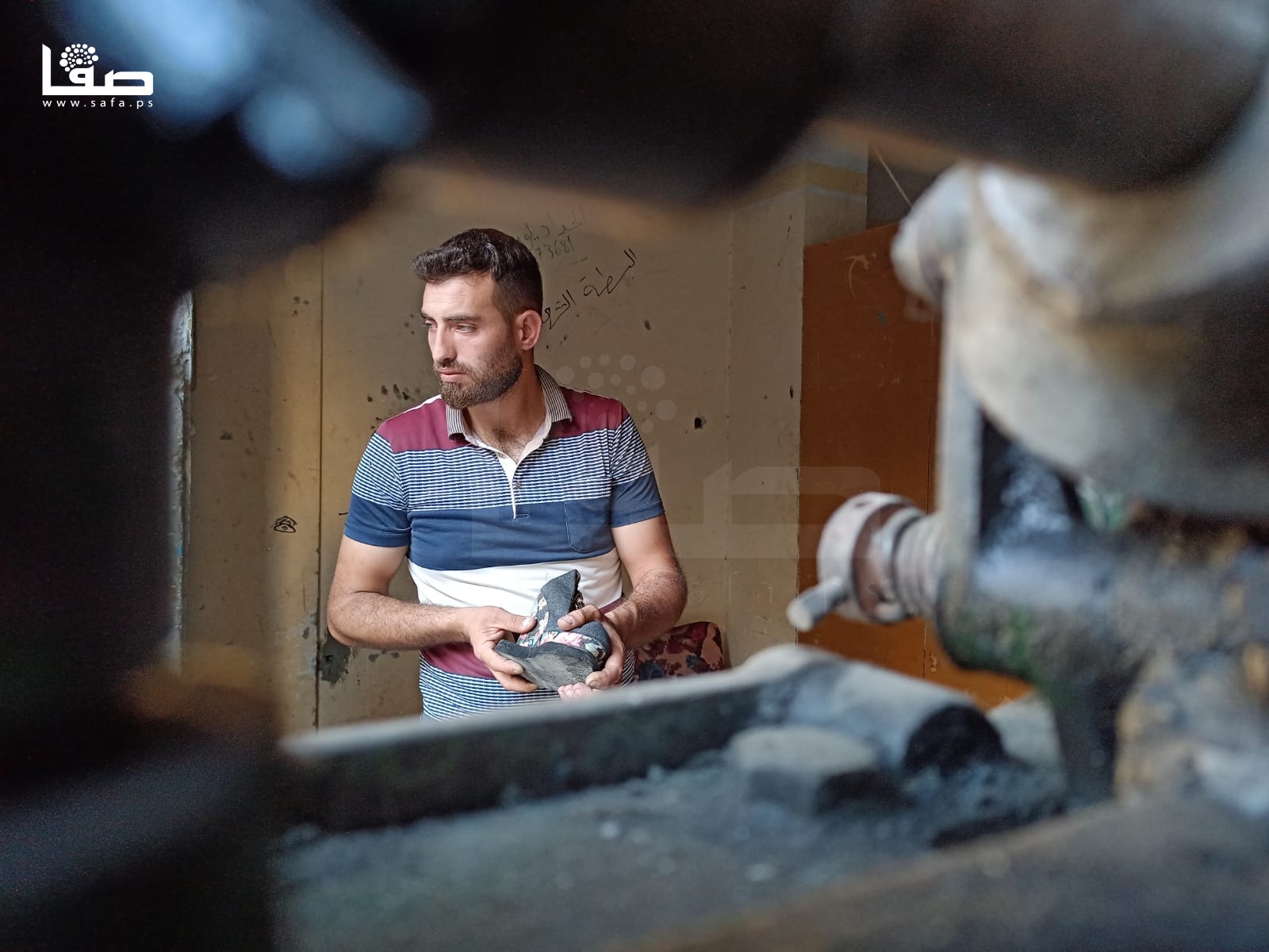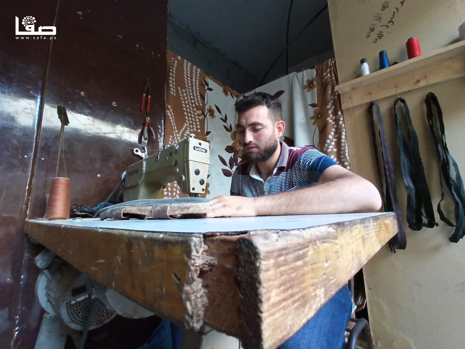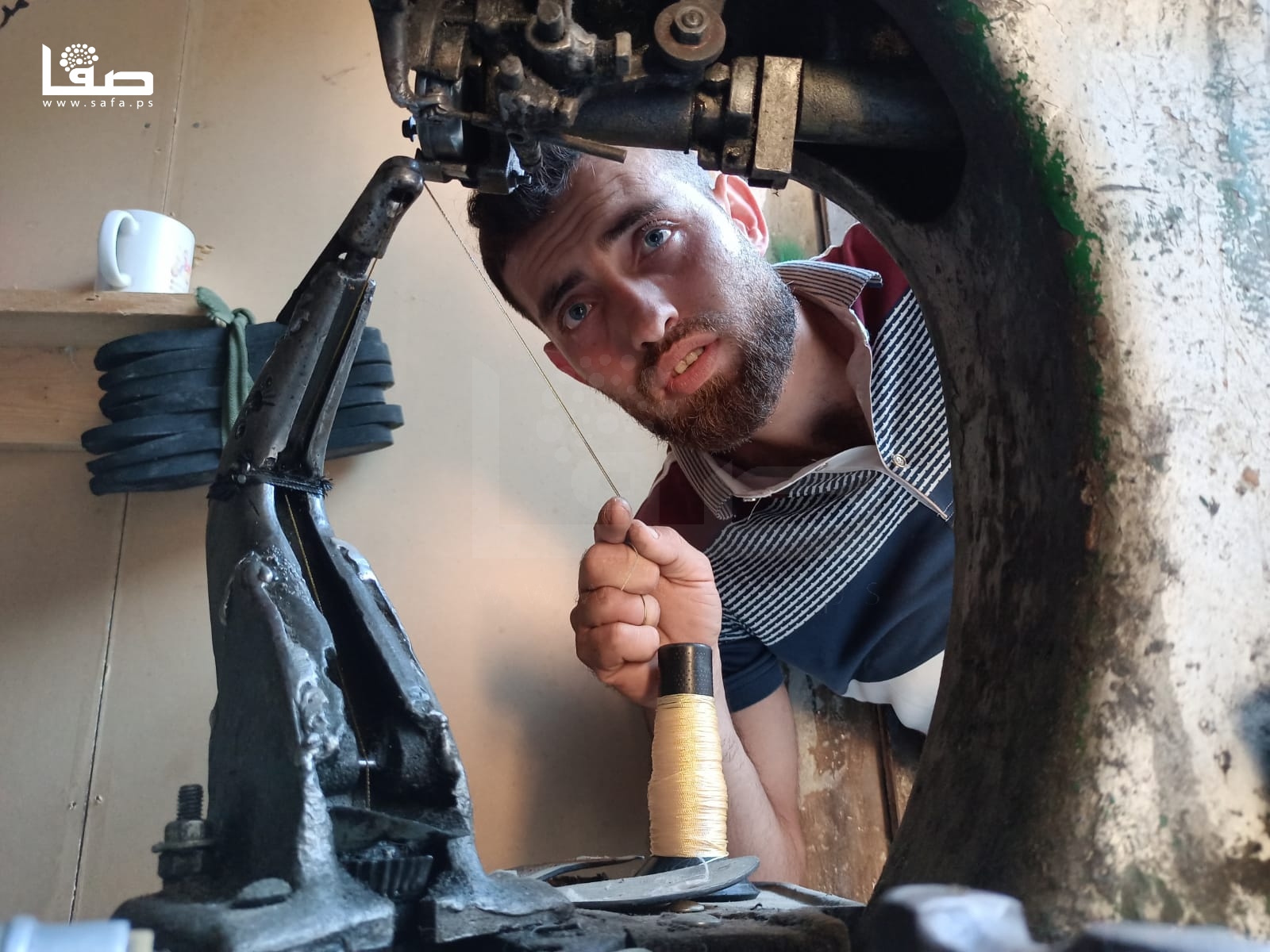 الحفيد يوسف عدوان (30عامًا) يقول لمراسل وكالة "صفا" إنه "تعلم المهنة من والده، وواجه صعوبات أثناء تعمله لها بالمخرز والمطربة والمسامير الصغيرة".