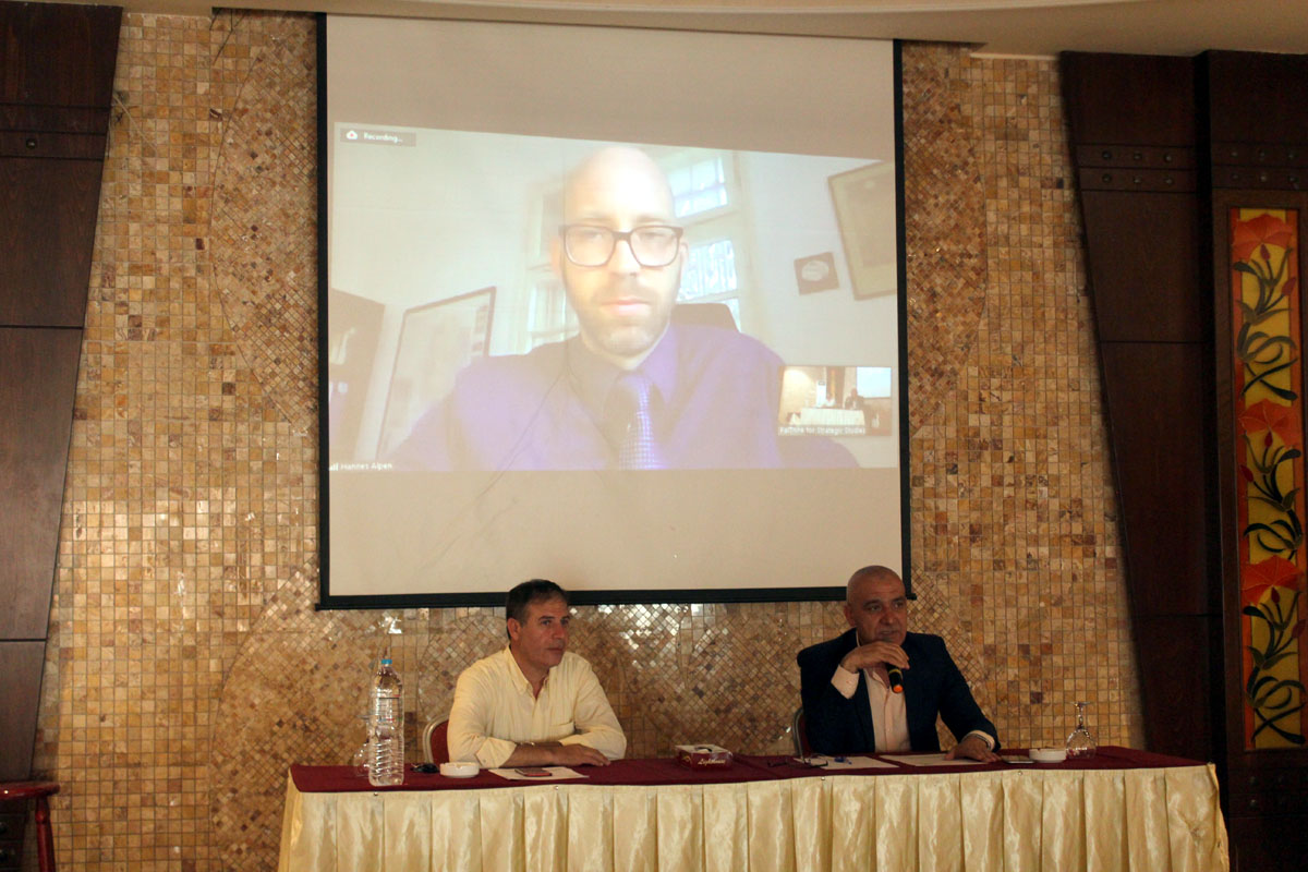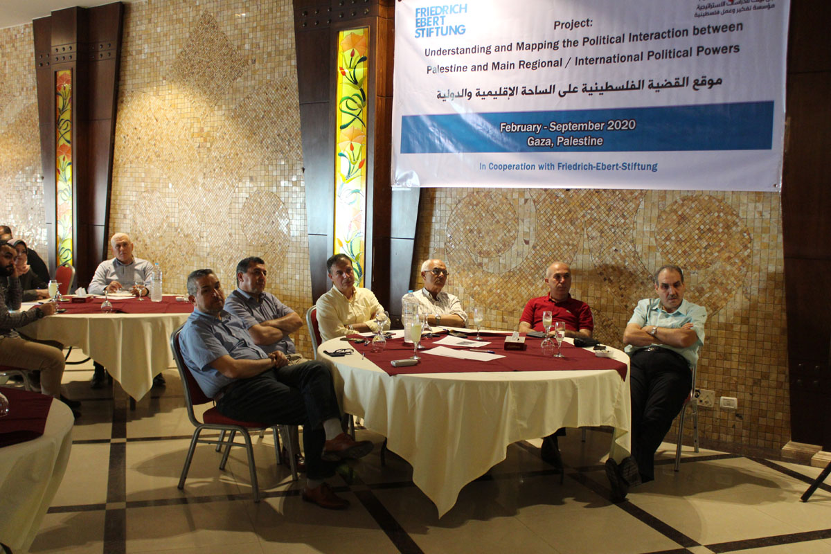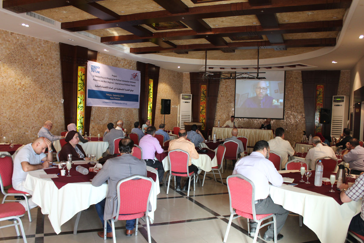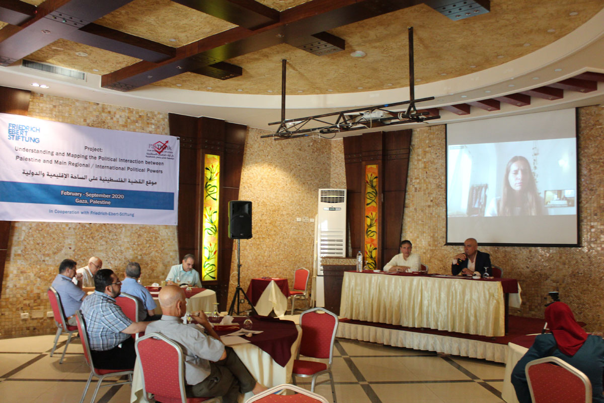 ونظم الجلسة الحوارية مؤسسة بال ثينك للدراسات الاستراتيجية بالشراكة مع مؤسسة فريدريش إيبرت الألمانية بعنوان "موقف الاتحاد الأوروبي تجاه خطة الضم الإسرائيلية".