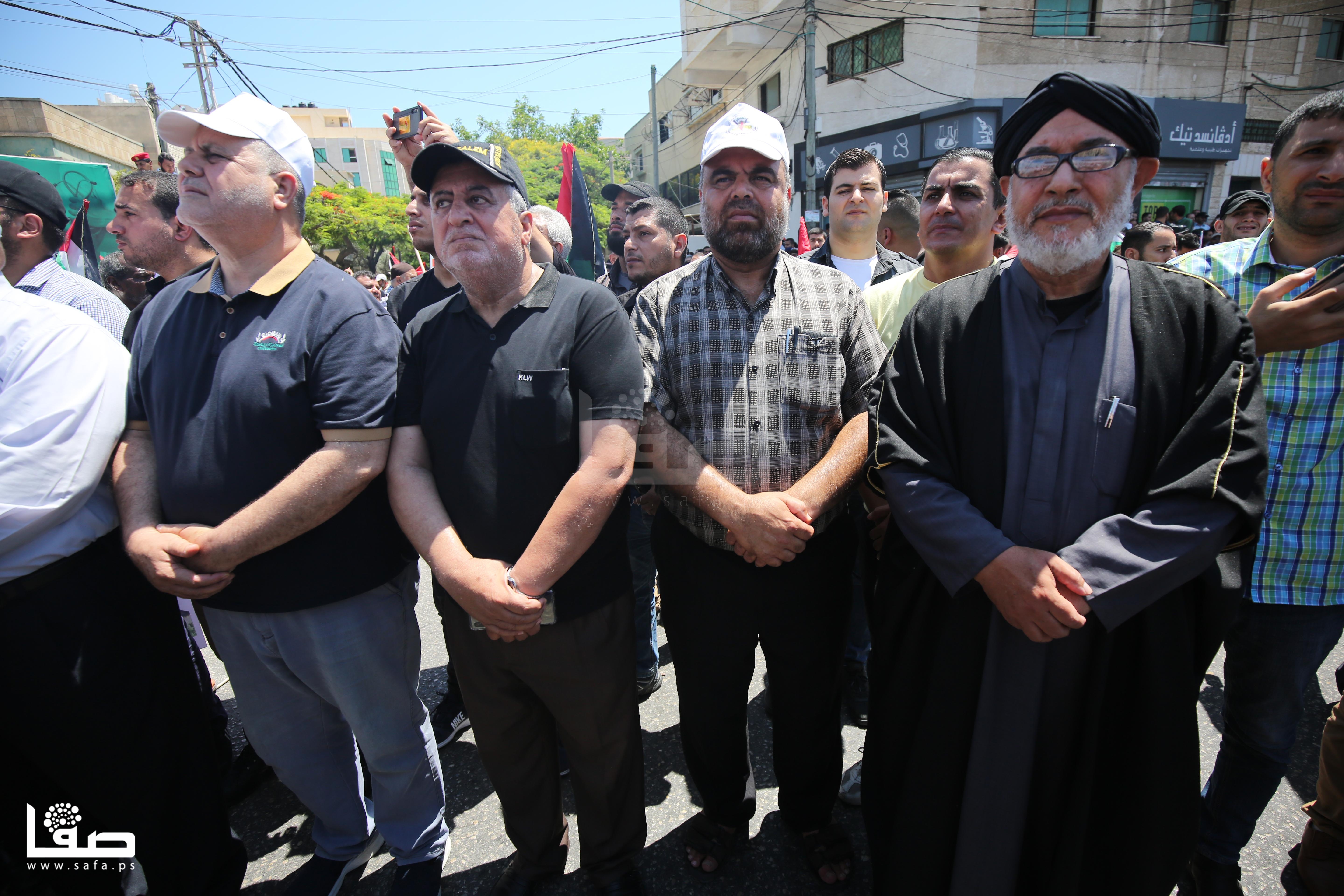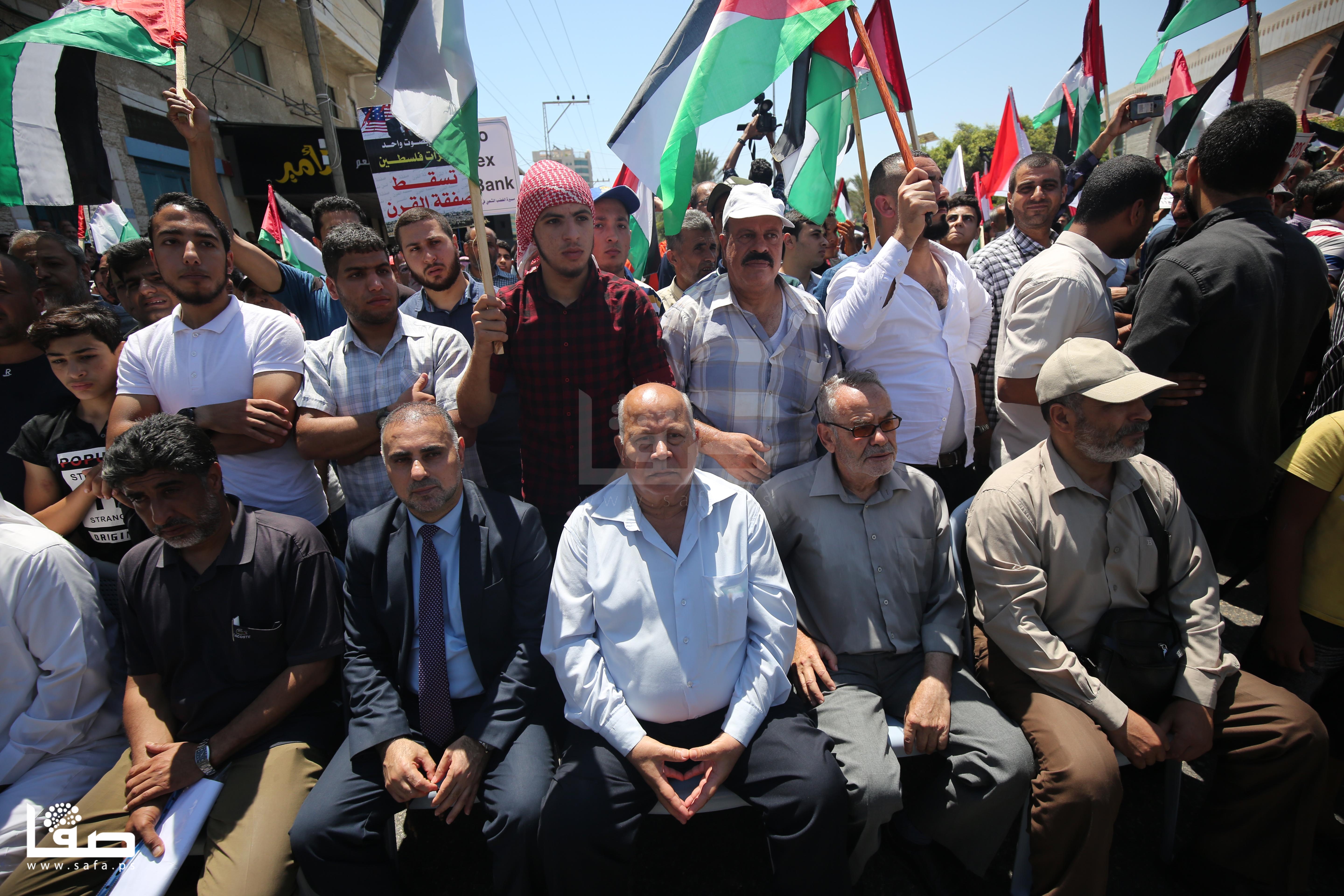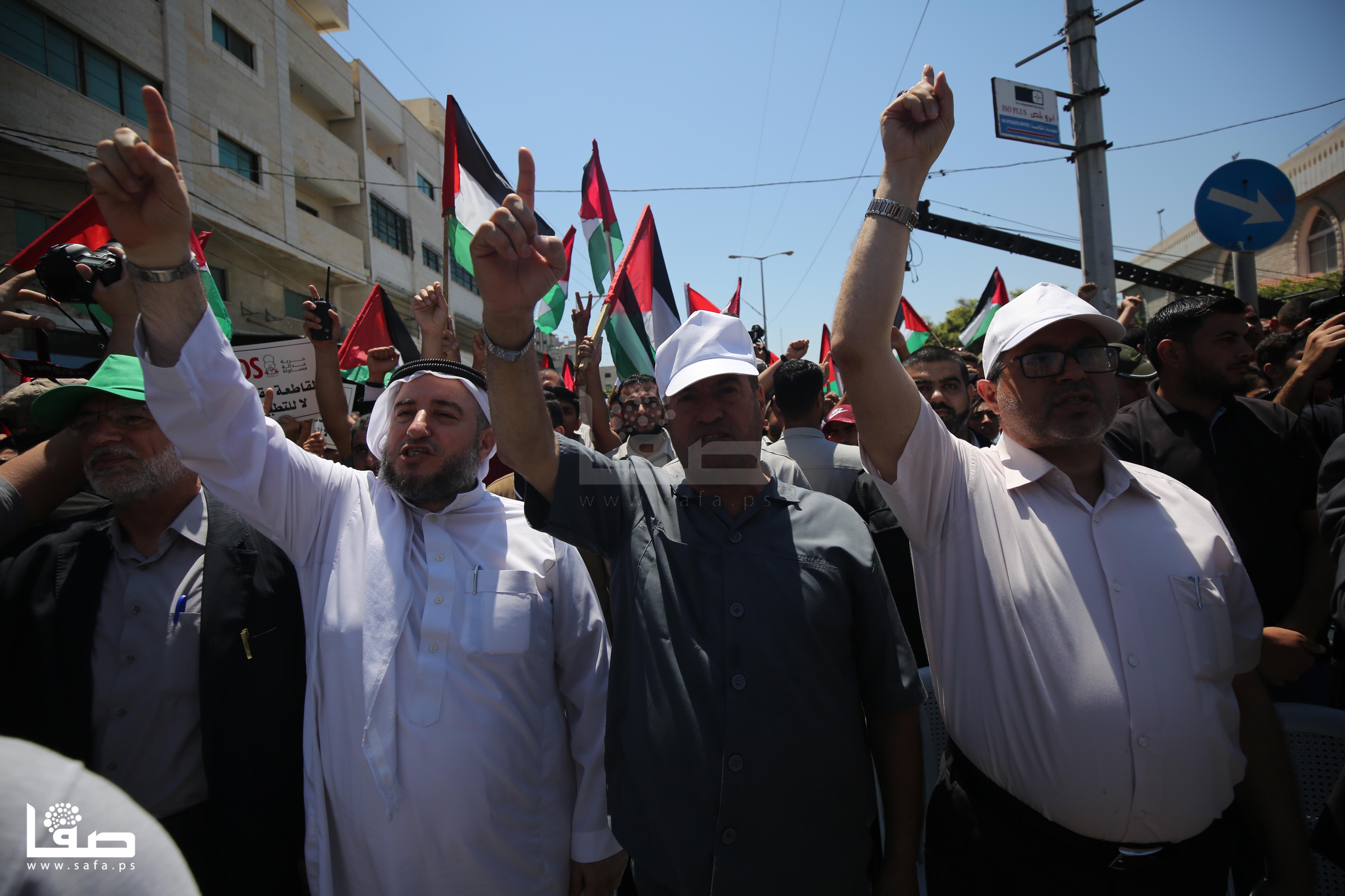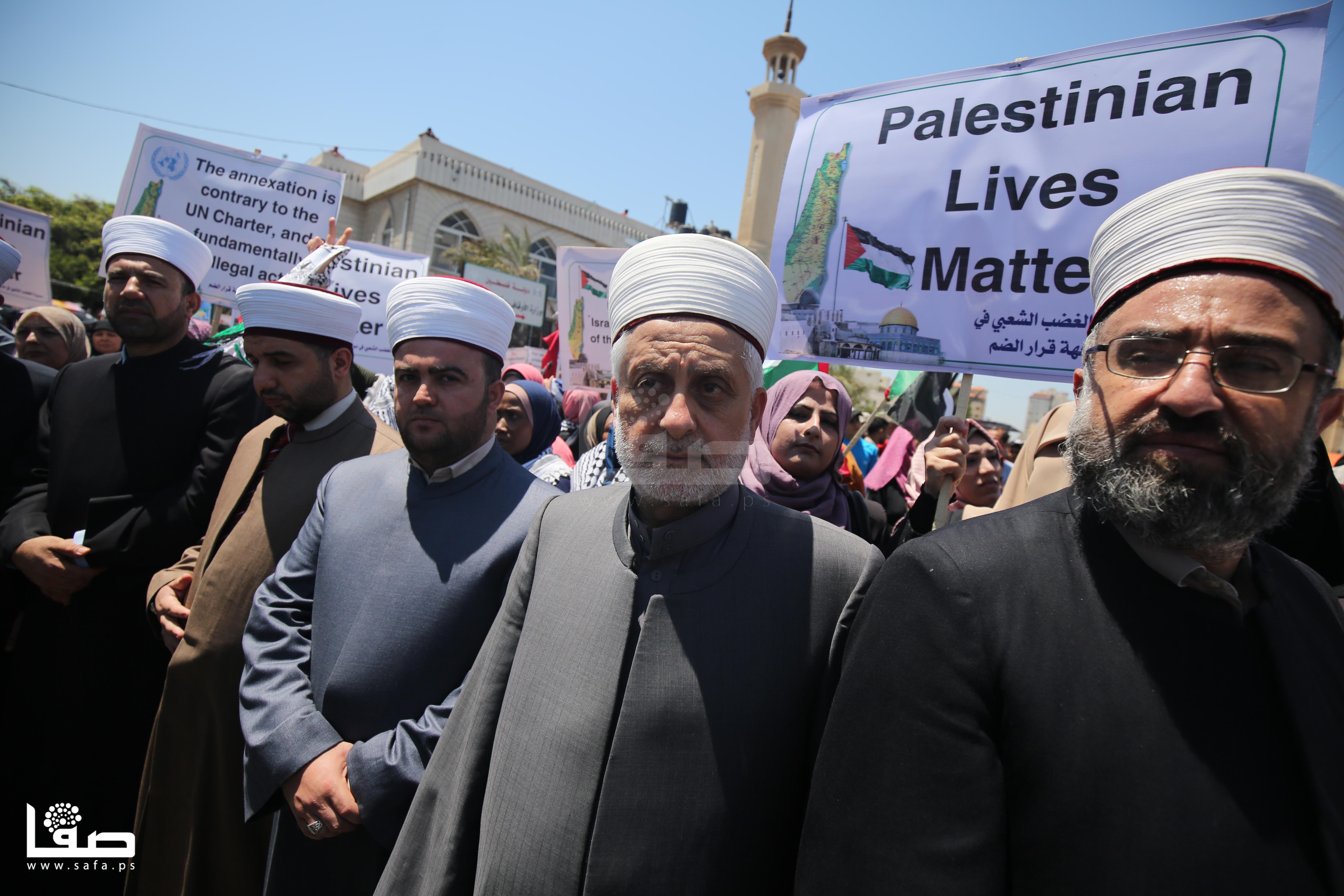 ورفع المشاركون الأعلام الفلسطينية ولافتات تؤكد رفضها لمشروع الضم والانتهاكات الإسرائيلية، وتشدد على التمسك بالحقوق والثوابت الفلسطينية.