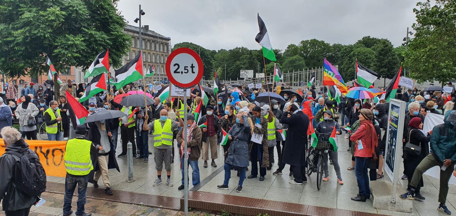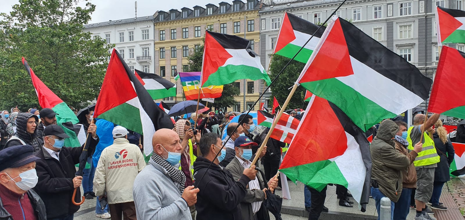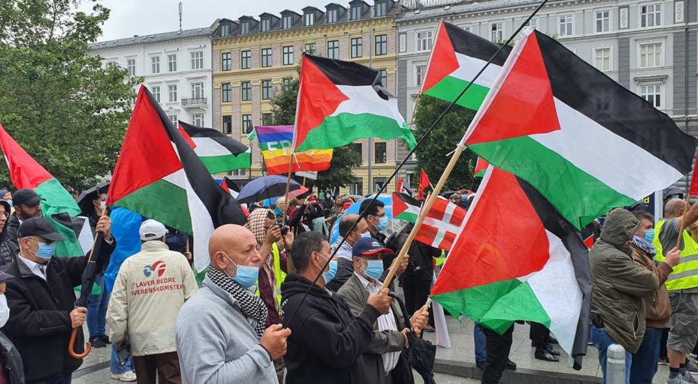 ورفع المتظاهرون الأعلام الفلسطينية واليافطات المنددة "بصفقة القرن" ومشروع الضم، وتوجهوا بمسيرة حاشدة إلى ساحة البرلمان الدانماركي، مرددين شعارات الحرية لفلسطين والعدالة للشعب الفلسطيني.