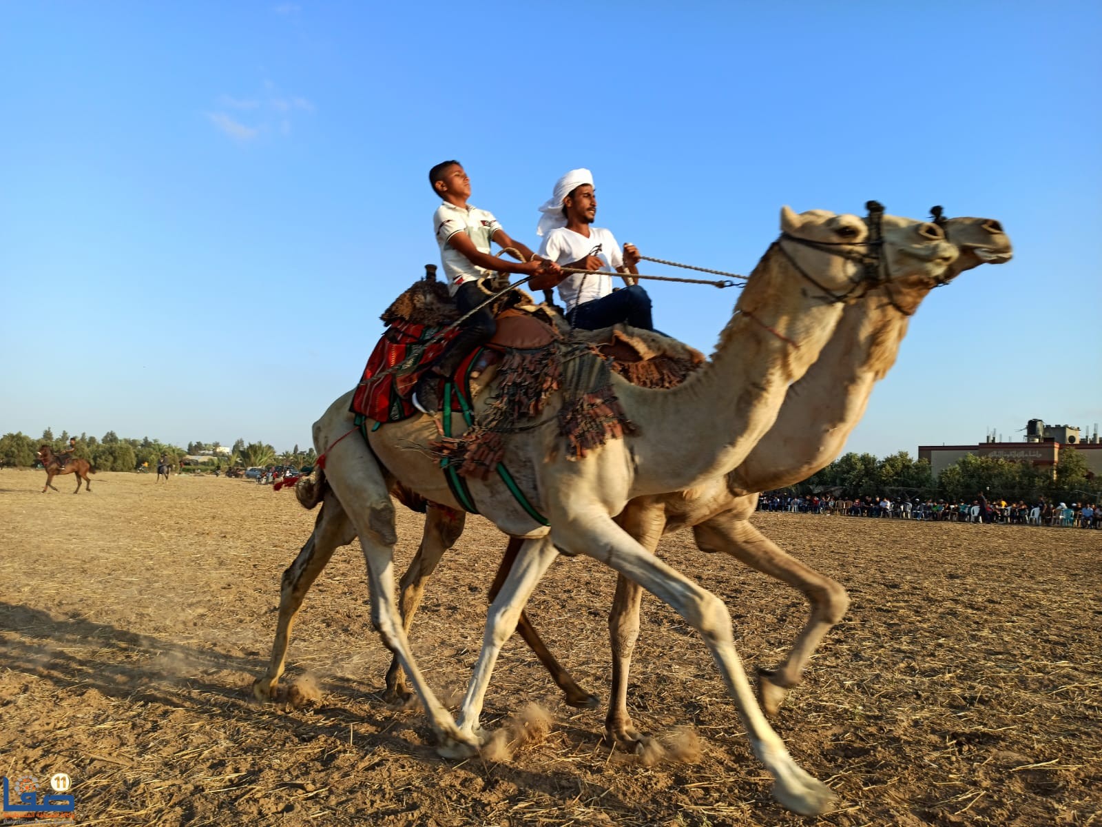 وبعد التحية السريعة يبدأ سباق جماعي أو ثنائي مشاركة شبان من الهجّانة على ظهور الجمال أيضًا، وجميعهم يرتدون زيّا بدويًا مزركشًا أو حتى مُقلّمًا بالأبيض الأسود فقط.